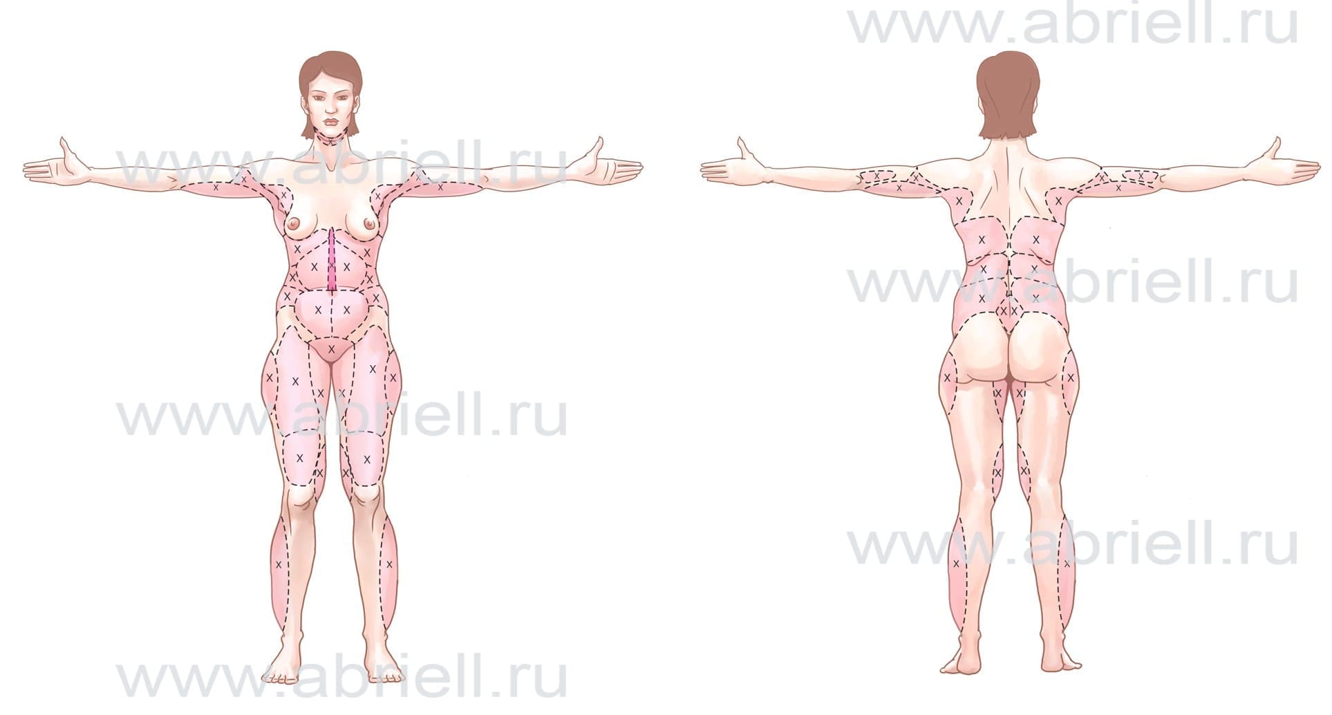 Начинающий развиваться еще в подростковом возрасте, целлюлит может локализоваться на различных участках тела: