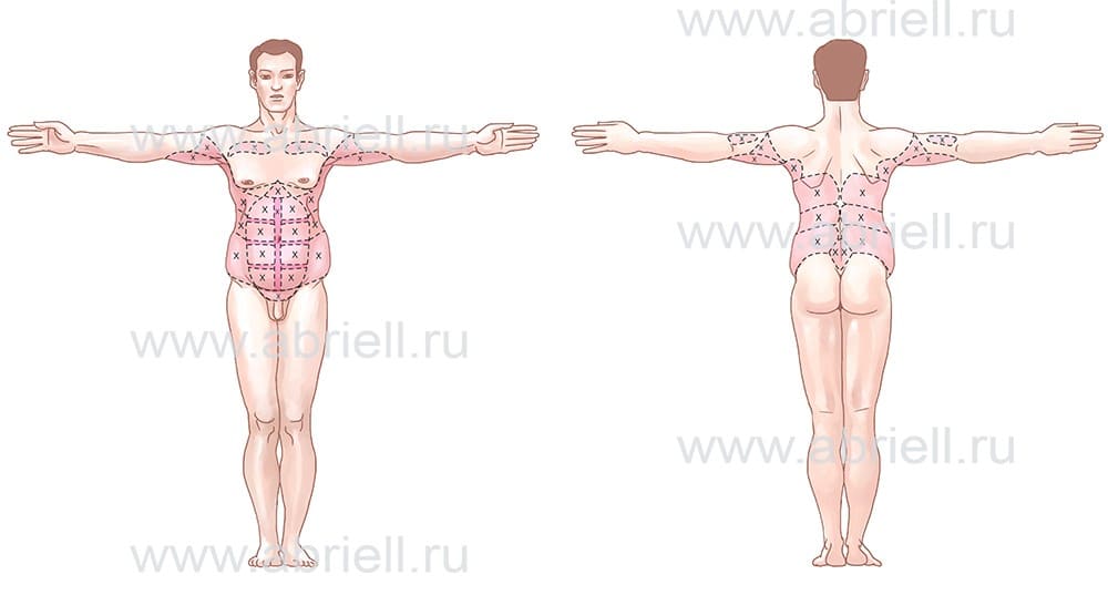 Что касается мужского пола, то устранение жира на животе можно сочетать с формированием шикарного атлетического пресса и рельефа груди или рук (удалённый жир хирург сможет применить в тех местах, где требуются выпуклые формы). Операция поможет также убрать отложения жира на бёдрах, боках и прочих проблемных зонах, что положительно повлияет на здоровье пациента.