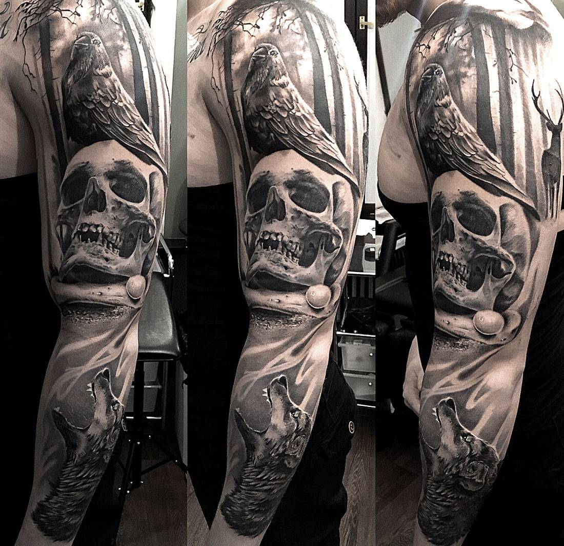 Рукав – это целая комбинаций татуировок, соединяющая в себе орнаменты, персонажей, символику и надписи. Смысл будет во многом зависеть от каждого элемента и их сочетания, но в целом тату служит демонстрацией своих особенностей, жизненных принципов и характера.