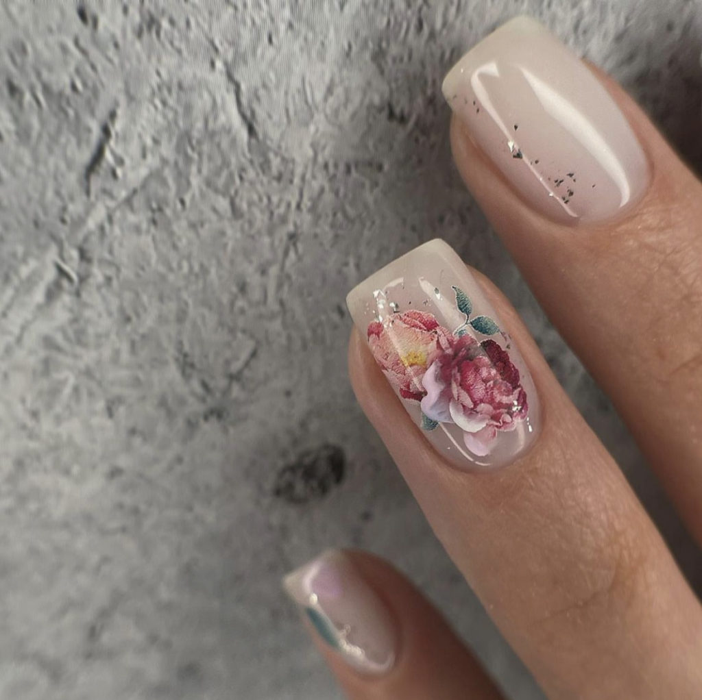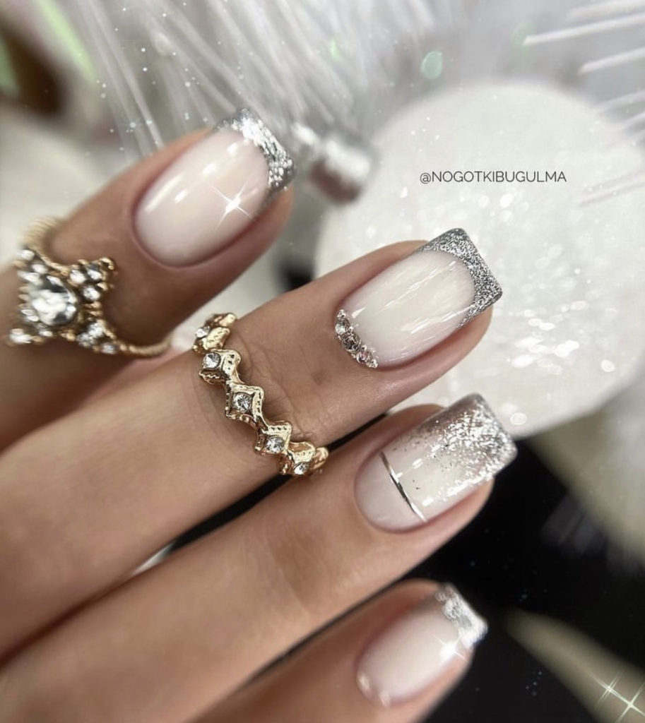 Нюдовая нейтральная база – это классика для офиса, школы и повседневных будней. Блестки делают на вечерние праздники, используют тематические изображения, например, Новогодние или на День Рождения.