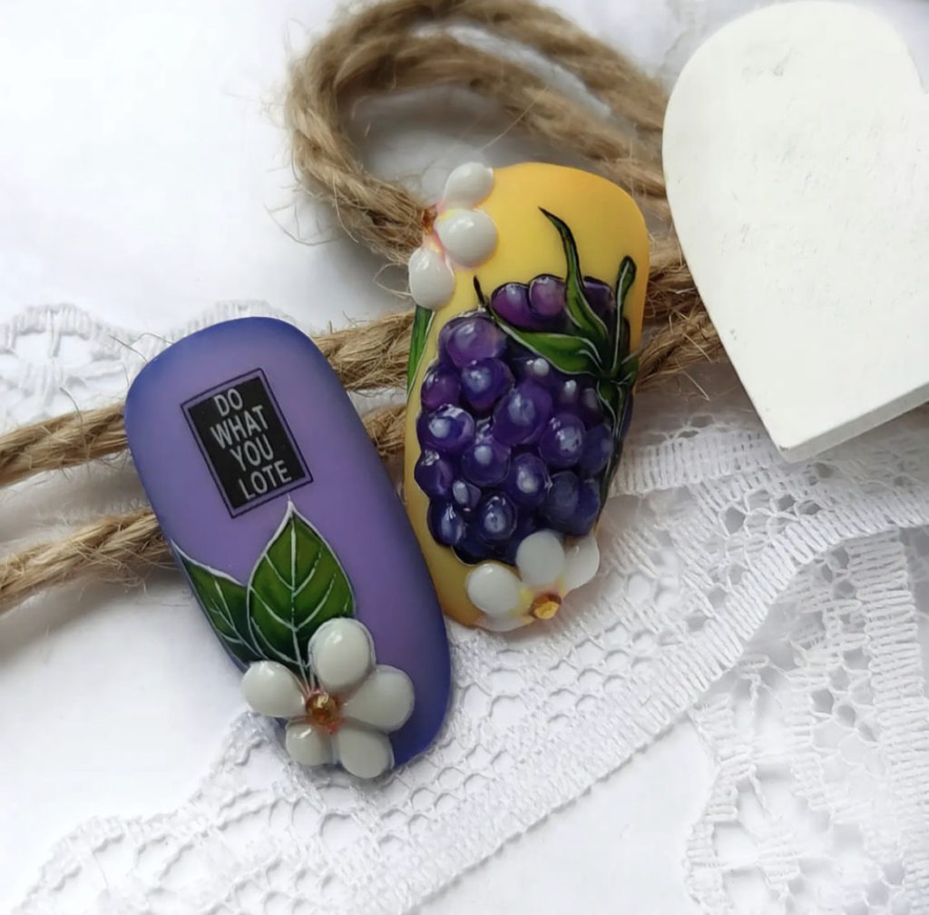 Необычное, но любимое мастерами сочетание цвета. Это как раз тот случай, когда темный тон здорово смотрится в летнем образе. Особенно манит взор матовое исполнение, но можно остановиться и на глянце. В последнем случае результат получится более ярким.