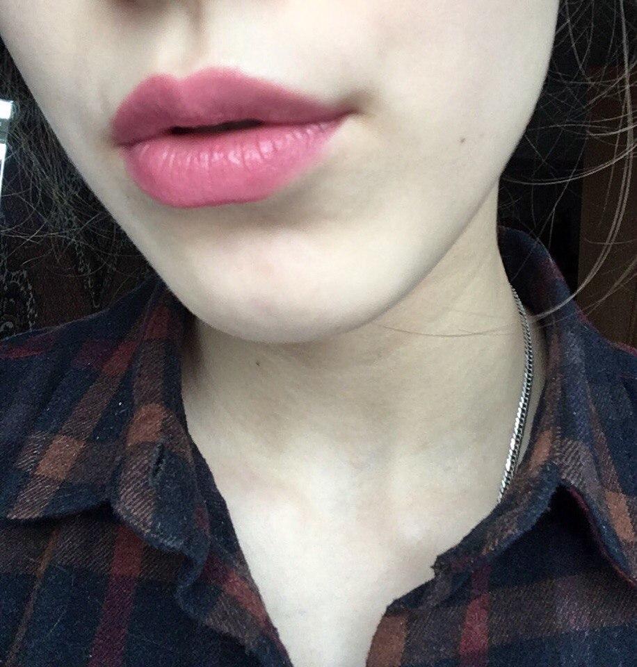 Почему-то этой помадой мне особенно сложно нанести ровный контур и это сразу видно. Поступаю следующим образом: рисую контур карандашом, наношу помаду, опять поправляю карандашом.