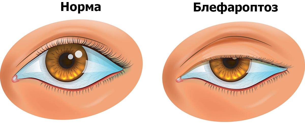 - легкой формы — веко опущено на 2-3 миллиметра и не закрывает зрачок;