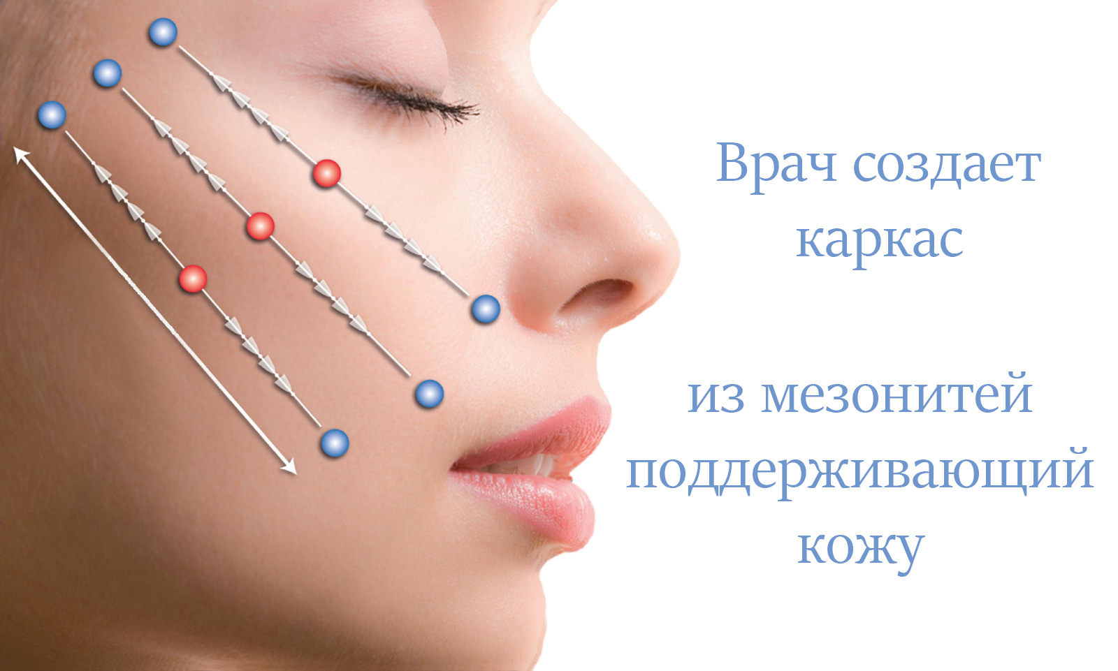 Прогрессивный метод, связанный с размещением под кожей особых мезонитей для безоперационной подтяжки лица и тела. Совмещает в себе контурную пластику и природную стимуляцию функций организма, направленных на возвращение тонуса коже и сохранение ею своей формы. Достаточно одного сеанса, при этом омолаживающий эффект сохраняется до 2-5 лет. Убираются мимические морщины на лбу, вокруг глаз и рта, возвращается упругость кожи живота и ягодиц.