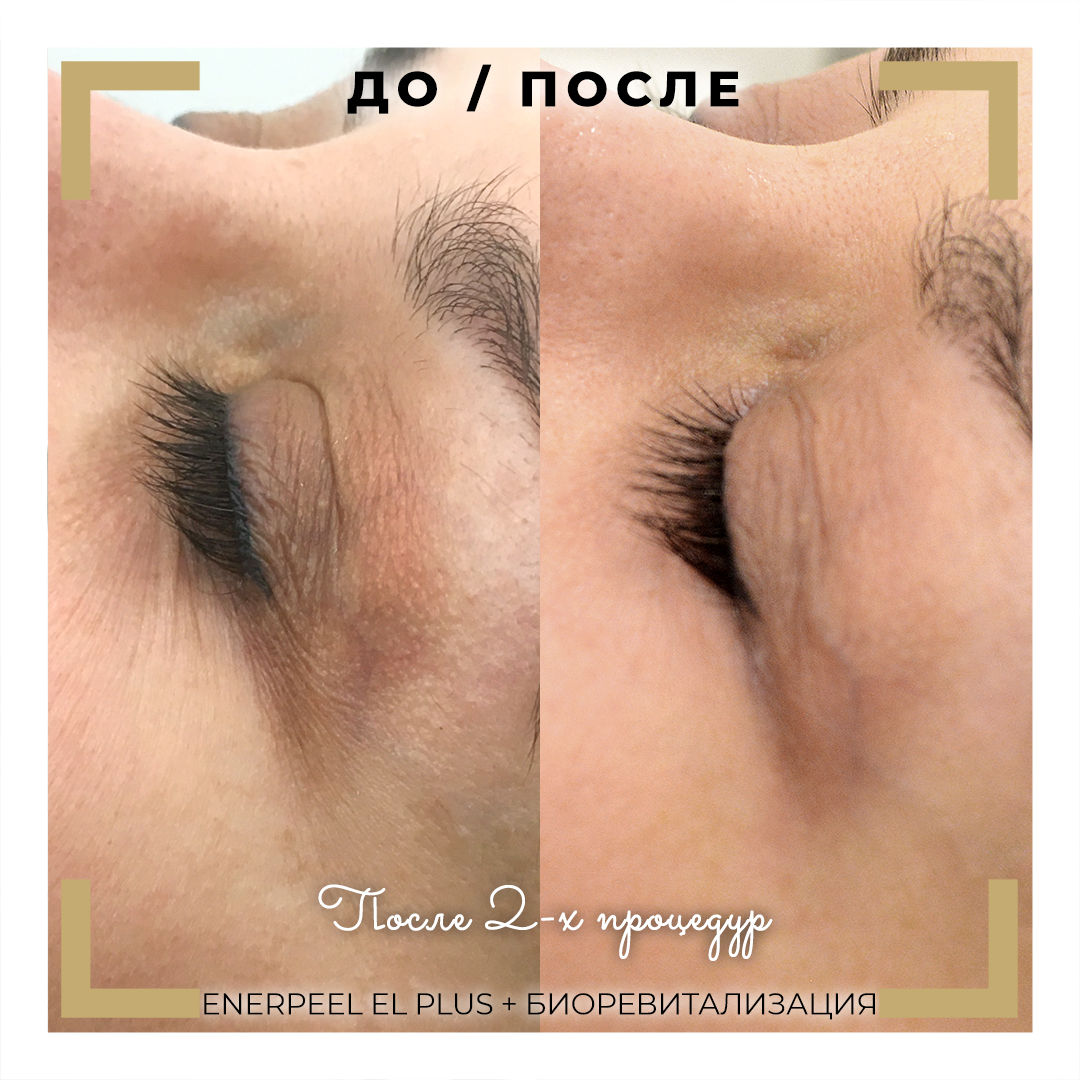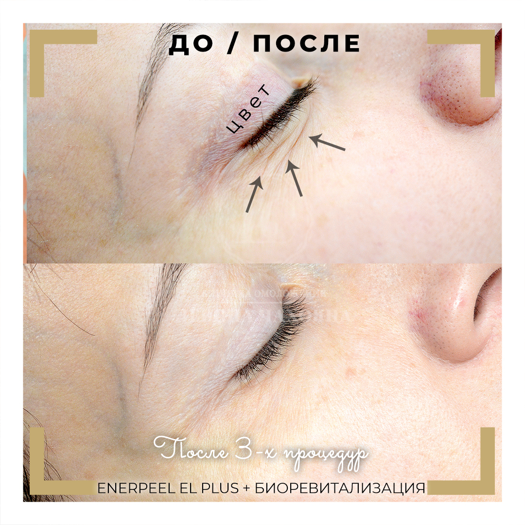 Пилинг для глаз отличается мягким воздействием, используемые в косметологии составы бережно размягчают ороговевший слой. Эффект заметен после первого сеанса, для получения стойкого положительного результата проводится курс процедур.
