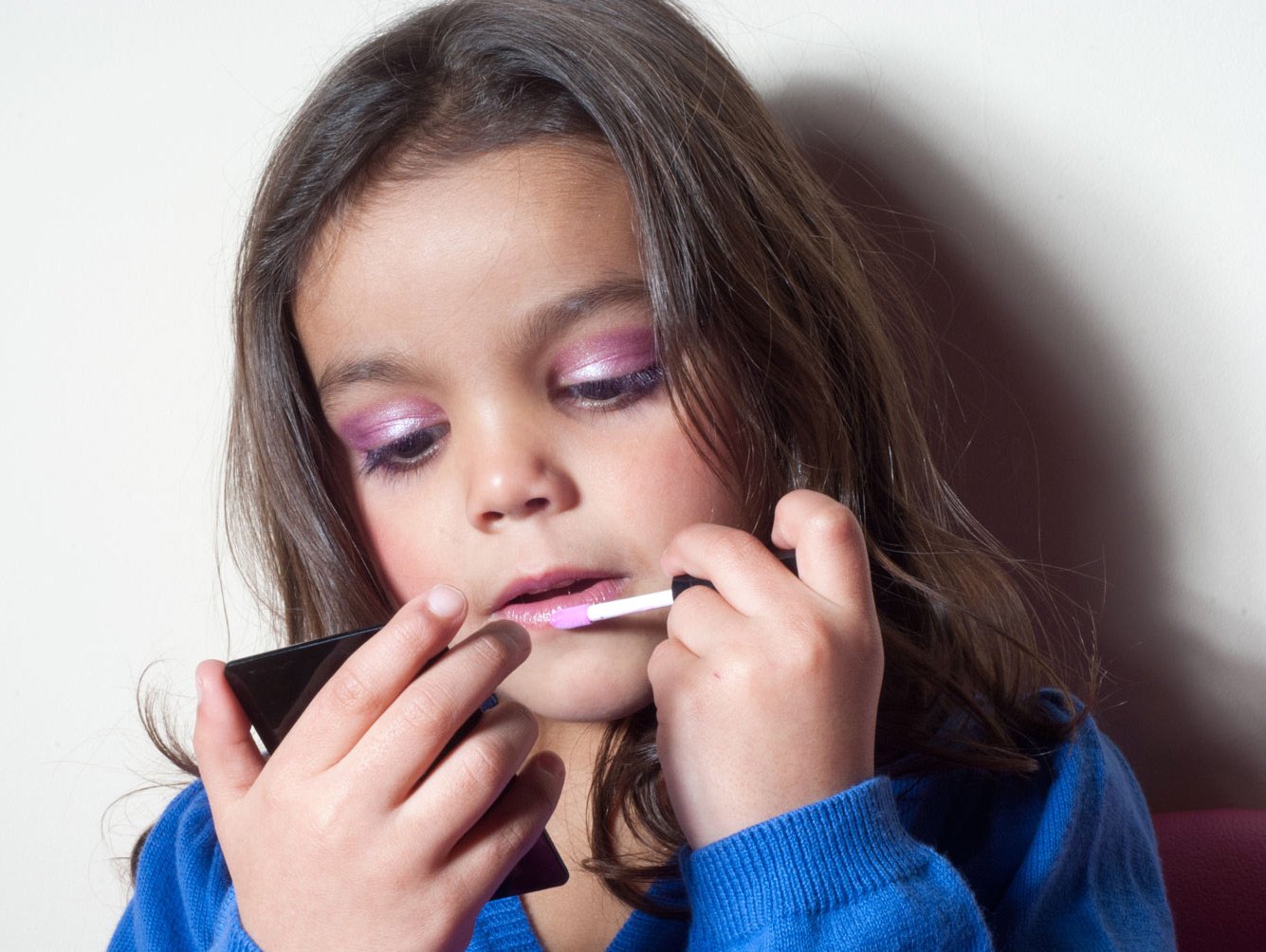 Маленькие девочки регулярно таскают косметику у мамы или старшей сестры, чтобы тайком её опробовать. Это нормально, так они примеряет не себя роль взрослой женщины. Но представить себе, что это юное и нежное создание будет накладывать её каждый день, достаточно сложно.