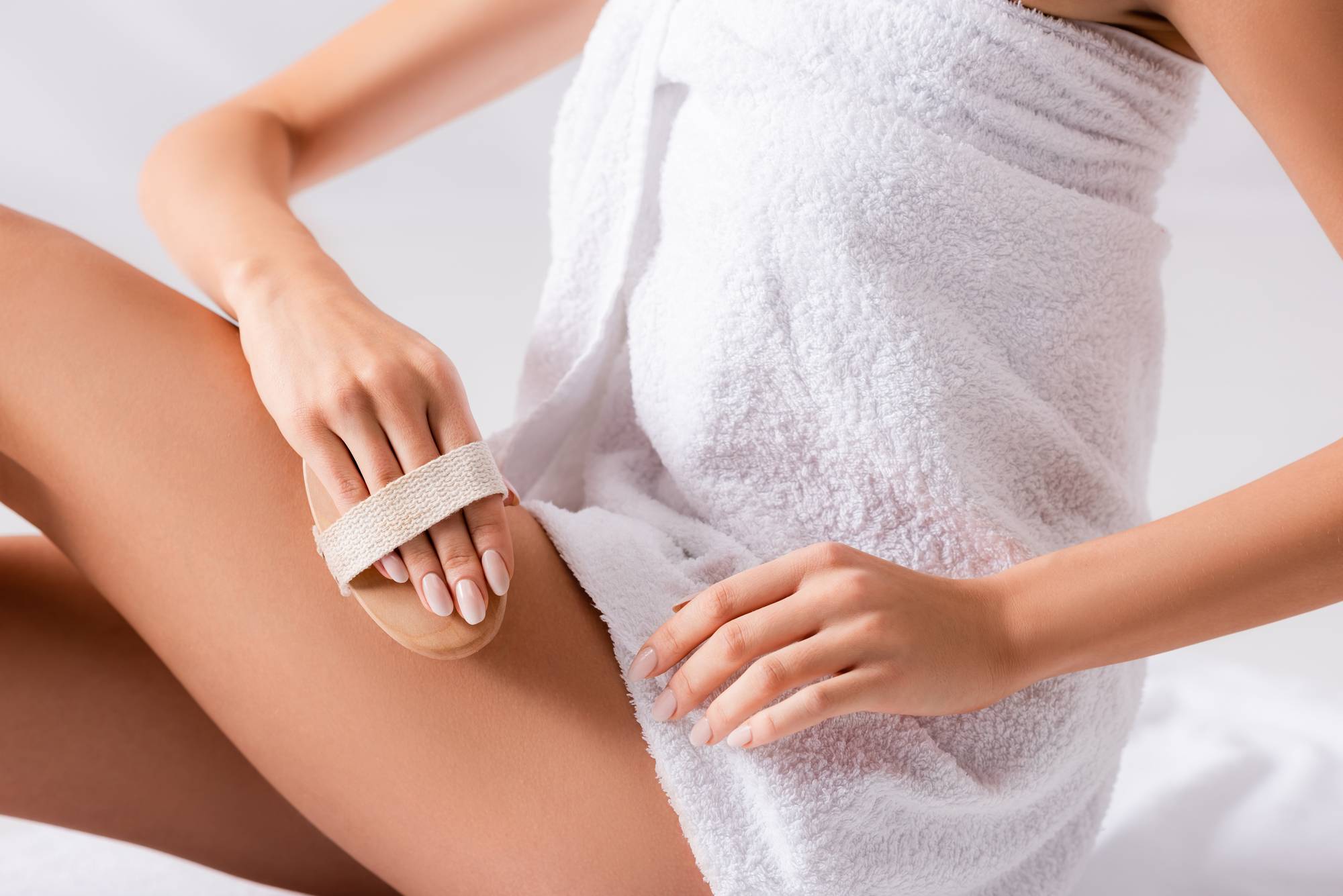 Сухая чистка — еще один вариант естественного отшелушивания. Она может помочь уменьшить проявления целлюлита, усилить кровоток и удалить омертвевшие клетки кожи.
