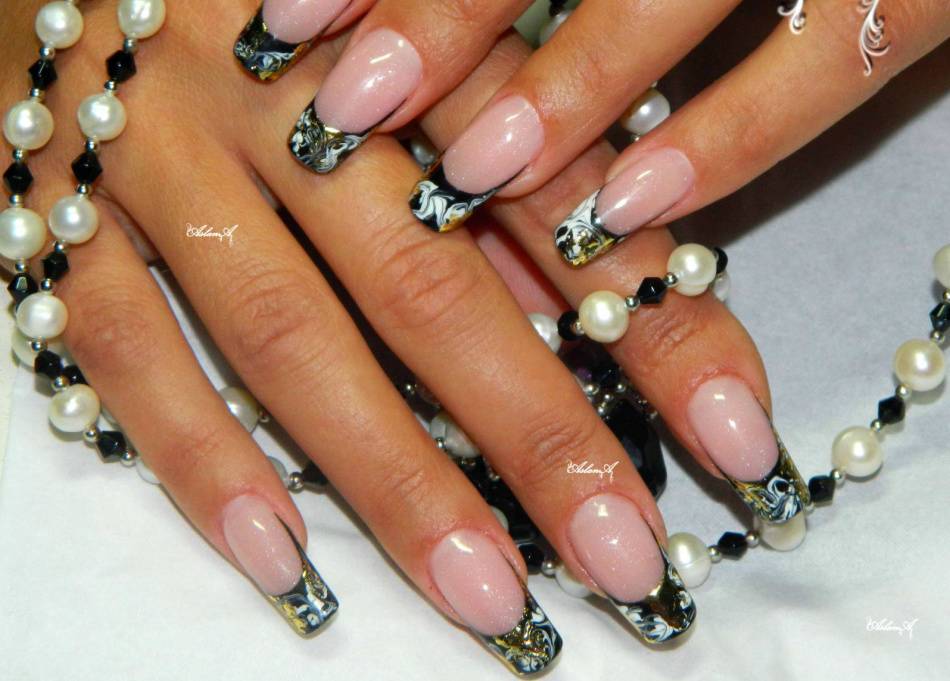 Черно-белый френч для острых ногтей