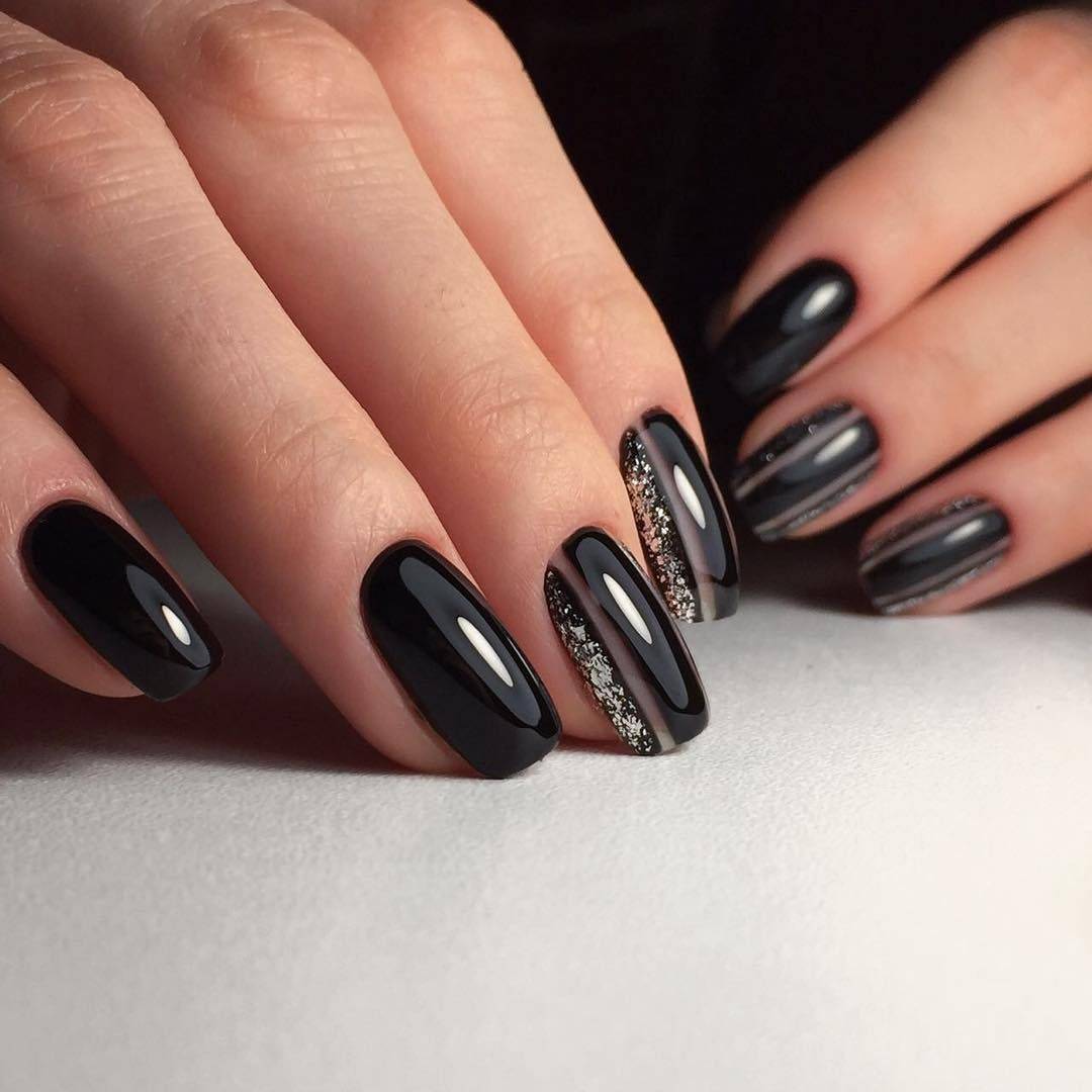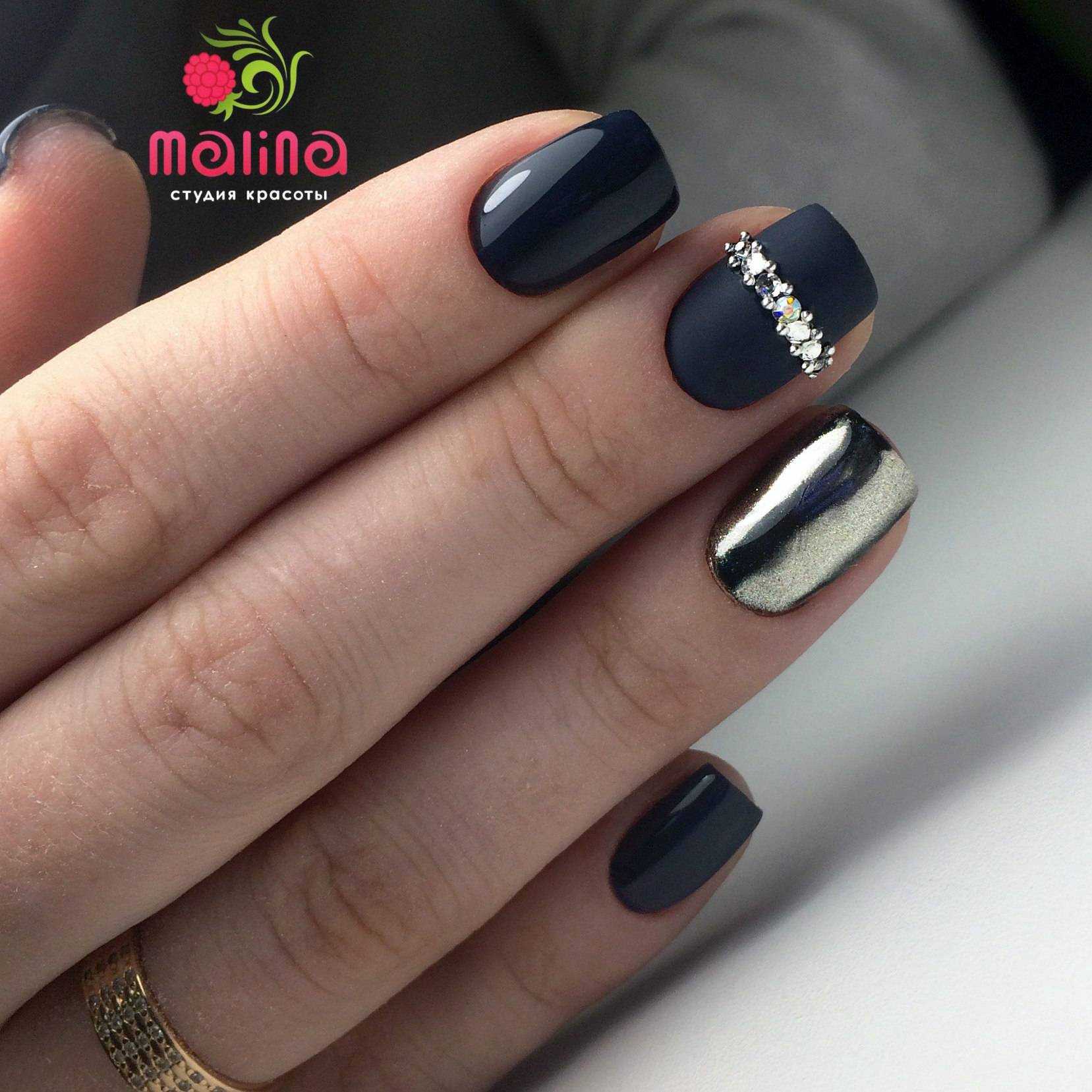Черный маникюр с втиркой