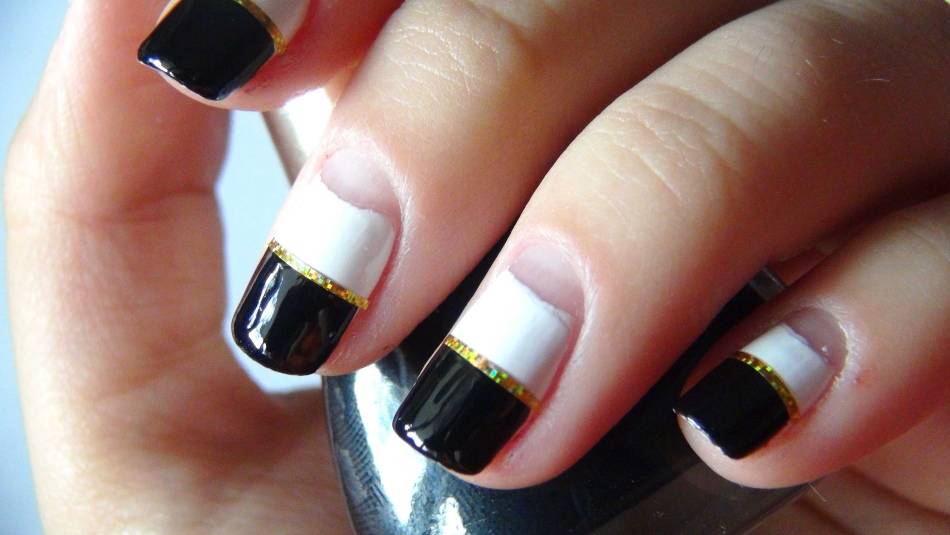 Черно-белый маникюр с золотом