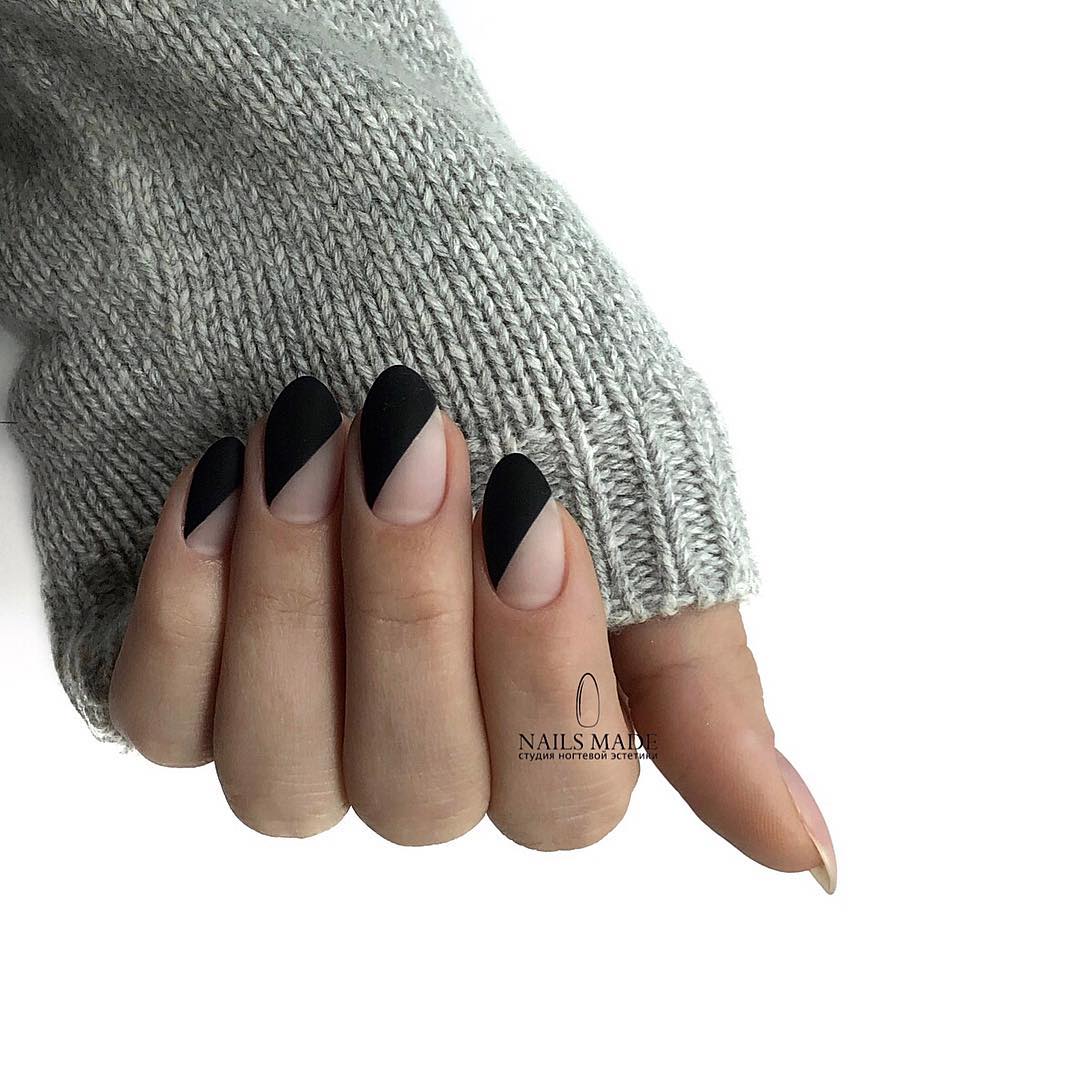 маникюр боковой френч модный черный с белым