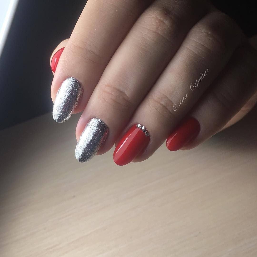 Красный маникюр с дизайном со стразами
