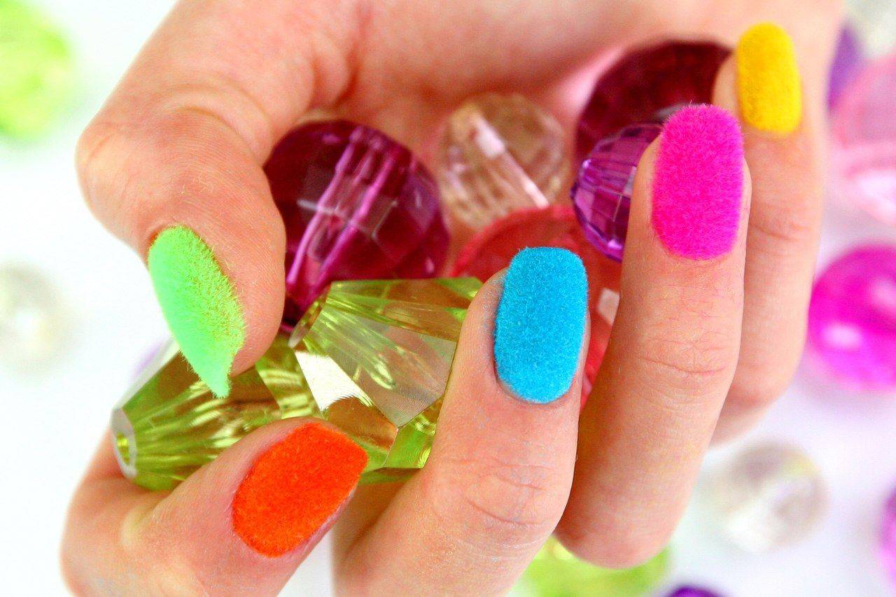 - Ни в коем случае не пробуйте покрывать цветной флок закрепляющим покрытием. Это никак не продлит жизнь бархатному маникюру, а просто создаст на его поверхности некрасивую темную корочку