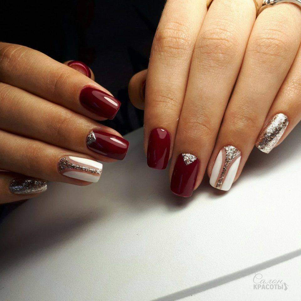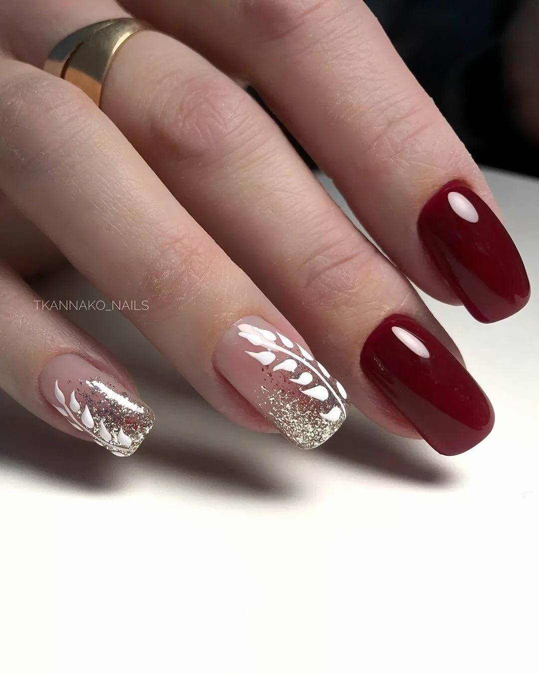 Благородное сочетание бордового с белым и золотым в шикарном маникюре для торжественных случаев: