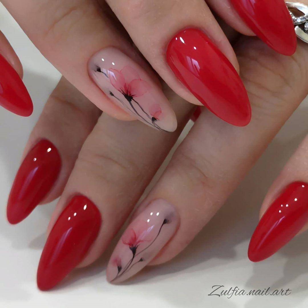 Маникюр красного цвета с дизайном 2020: актуальные идеи дизайна ногтей