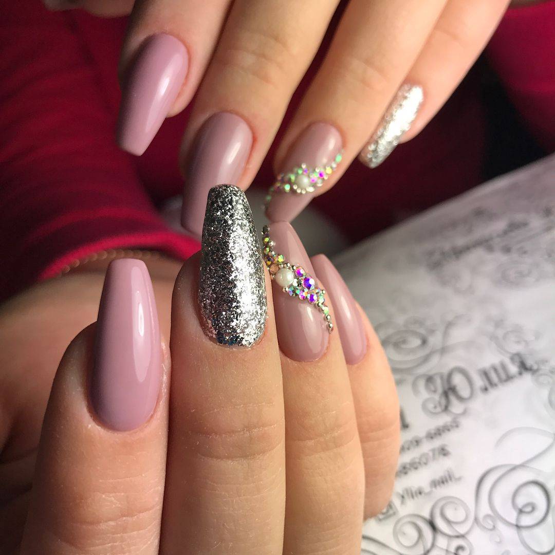 Они придают дизайну насыщенность, акцентируют внимание на отдельных ноготках. Стразы в сочетании с блестками помогут создать потрясающий торжественный нейл-арт