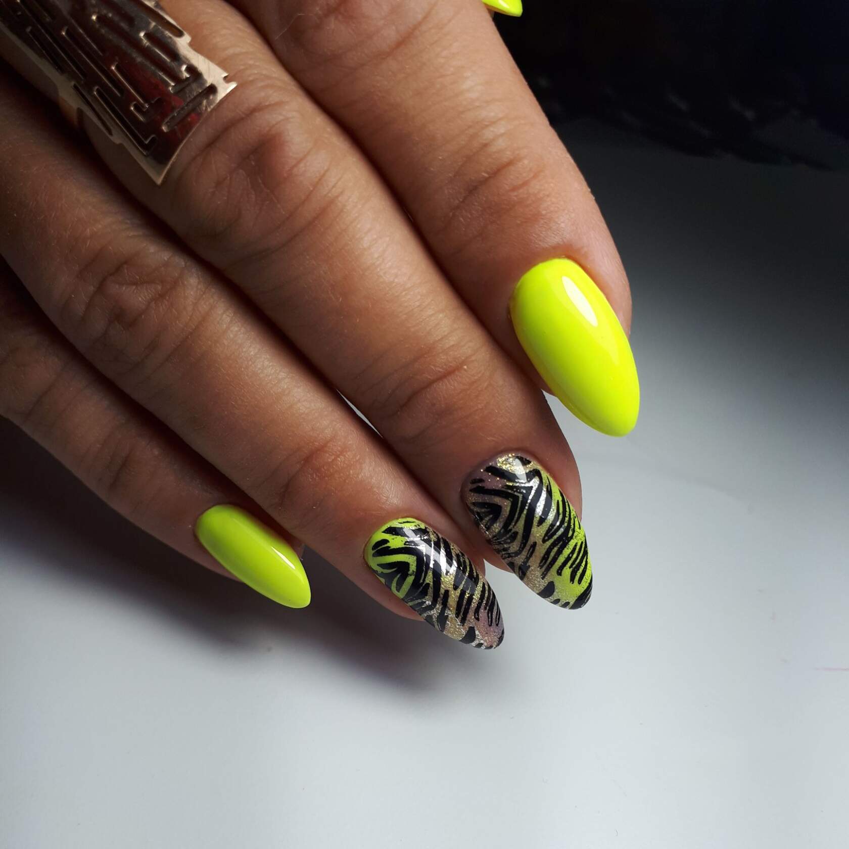 Гламурный летний дизайн ногтей с неоновым спецэффектом – хит уже несколько сезонов подряд. Экстремальный маникюр «любит» заостренные ногти овальной формы больше среднего размера или игривую квадратную форму не слишком длинных ногтей с чуть закругленными краями.