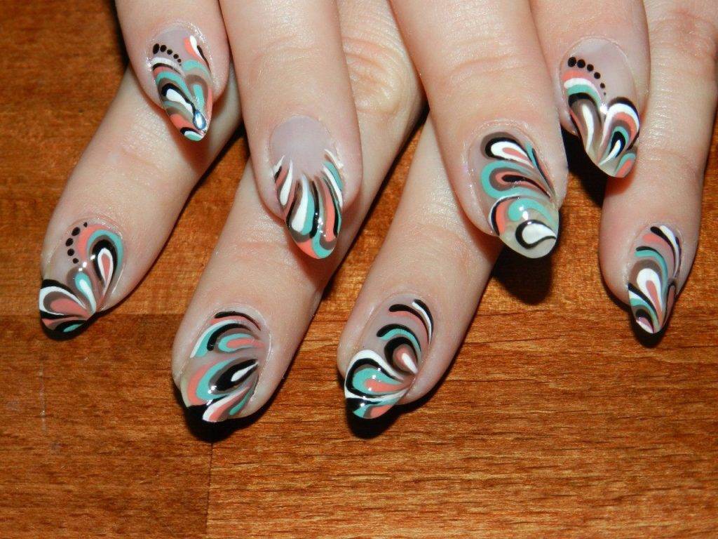 Часто при наращивании ногти декорируют в технике «аквариум».