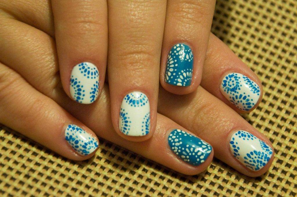Изобразить на ногтях можно как различные точки дотсом, так и волнообразные линии, а скомпоновав эти элементы можно создать целые соцветия и феерические рисунки.