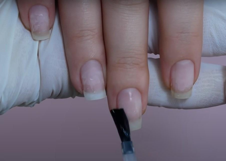 Первым делом подготавливают ногтевую пластину – снимают старое покрытие, выполняют гигиенический маникюр.