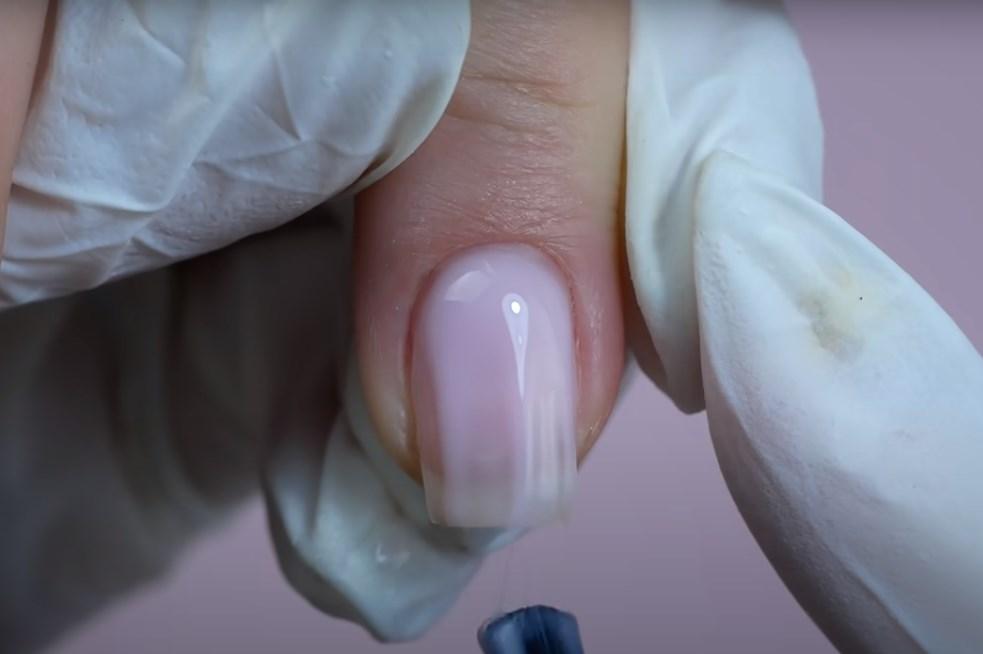 Этап 1 – Базовое покрытие. Наносят прозрачную базу в два слоя (первый тонкий, второй – выравнивающий), дают хорошо просохнуть.
