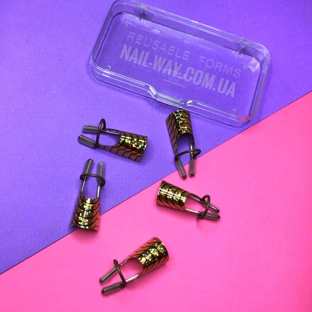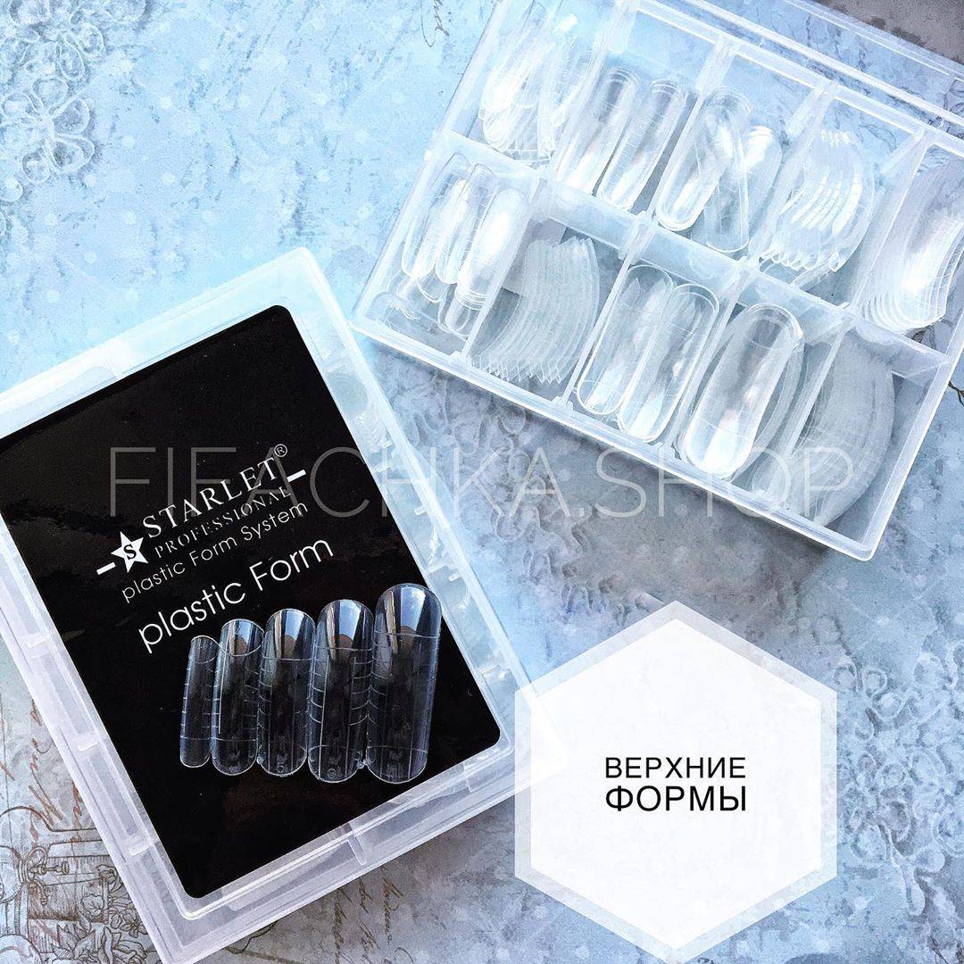 Верхние конструкции — готовые пластиковые формы, имеющие разный размерный ряд. Они заполняются полигелем и устанавливаются сверху ногтя, а после застывания легко снимаются.