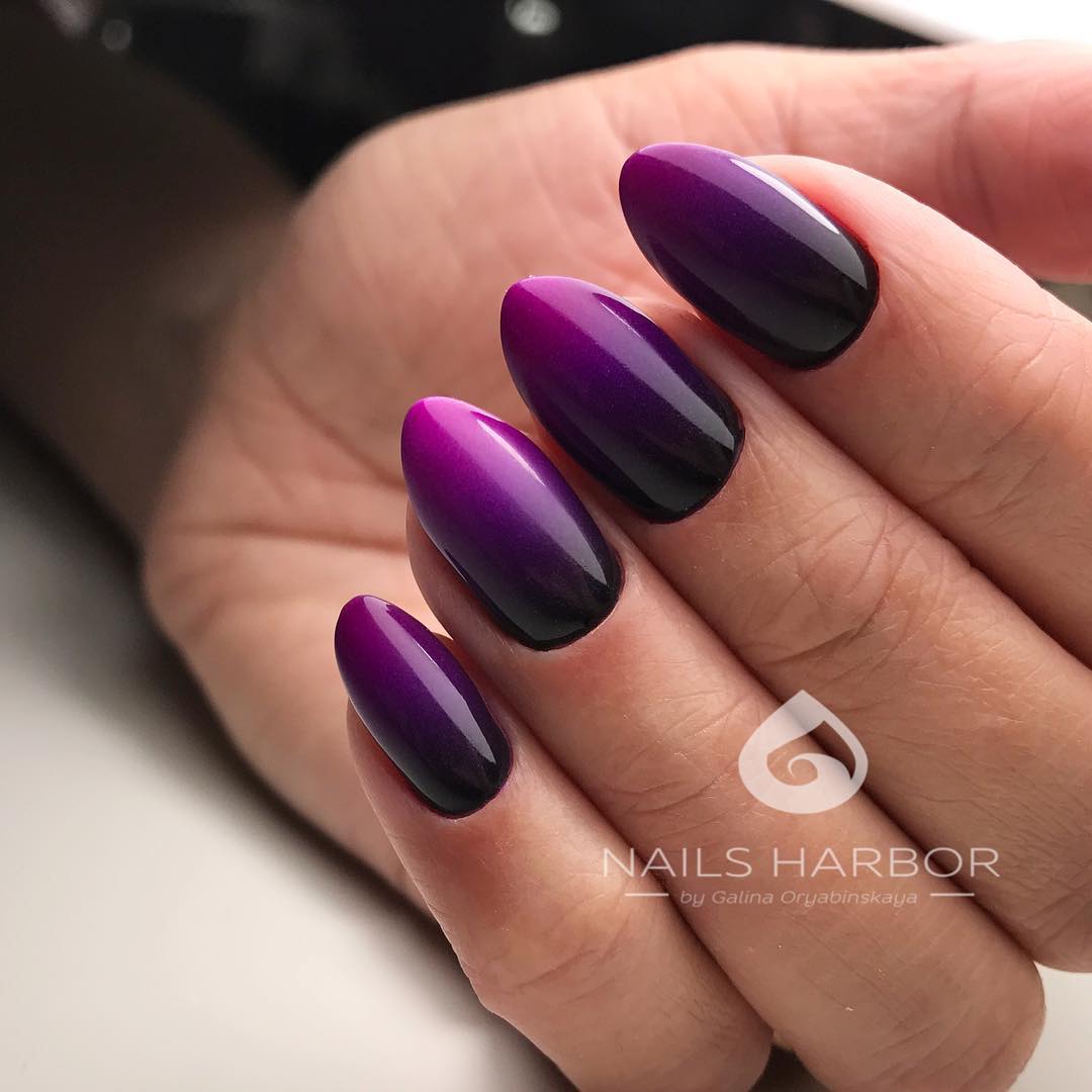 Любительницы темных оттенков теперь могут не ограничиваться исключительно красным или черным. В 2018 популярны коричневый, синий, бордо, фиолетовый и зеленый. На темной основе эффектно выглядит «кошачий глаз».
