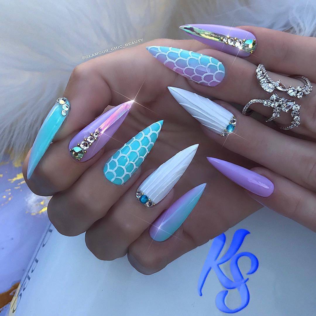 При этом важно не переборщить, дизайн должен быть заранее продуман и желательно апробирован на типсах. На острых ногтях отлично смотрится дизайн с втиркой, градиентом, меланжем