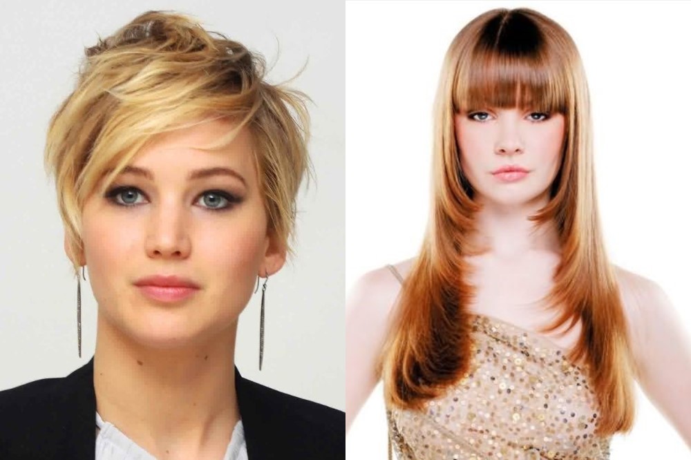 Идеально помочь смогут удлиненный каскад, боб с длиной до линии подбородка и челка с косыми срезами;