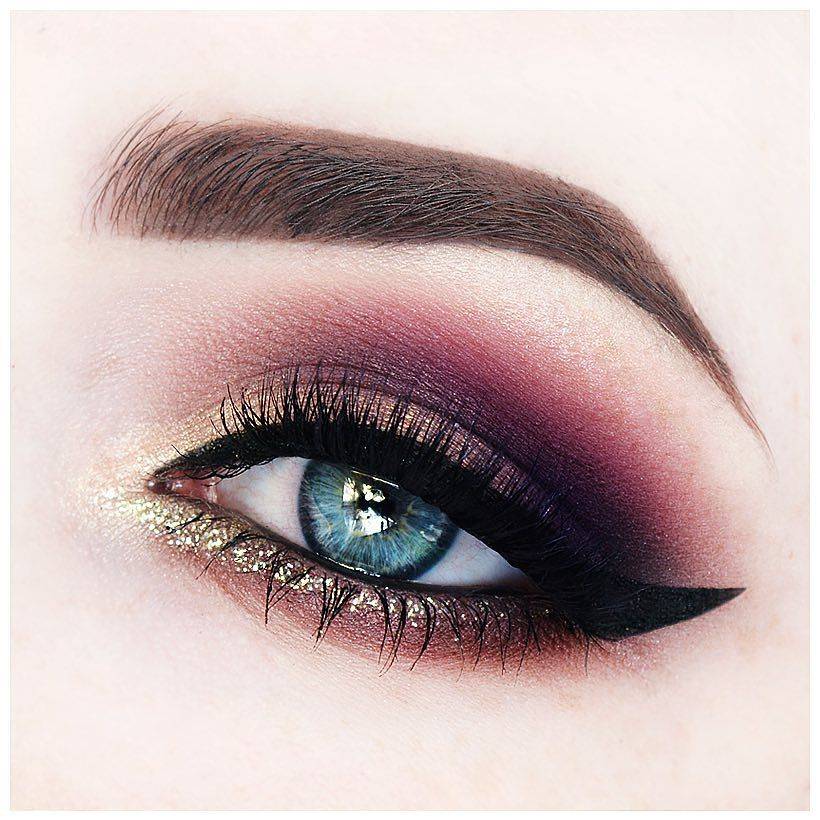 Макияж для серо-голубых глаз и темных волос предполагает присутствие металлических оттенков, ярких розовых тонов и классического черного цвета. Отличным вариантом для темноволосых дам станет популярный «Смоки Айс».