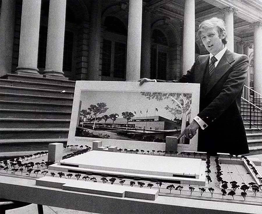 После объявления Пенсильванской центральной железной дороги банкротом, Трамп получает возможность выкупить участок принадлежавшей ей земли в западной части Манхэттена. Когда первоначальные планы по постройке жилья оказываются неосуществимыми из-за неблагоприятной экономической ситуации, Трамп предлагает участок под конференц-центр, и в 1978 г. правительство из трёх возможных мест выбирает именно его. Правда, предложение Трампа о бесплатной передаче участка в обмен на то, что центр будет назван его фамилией, принято не было, равно как и просьба построить целый комплекс, который предлагалось назвать «Сенатор Якоб Джавит».