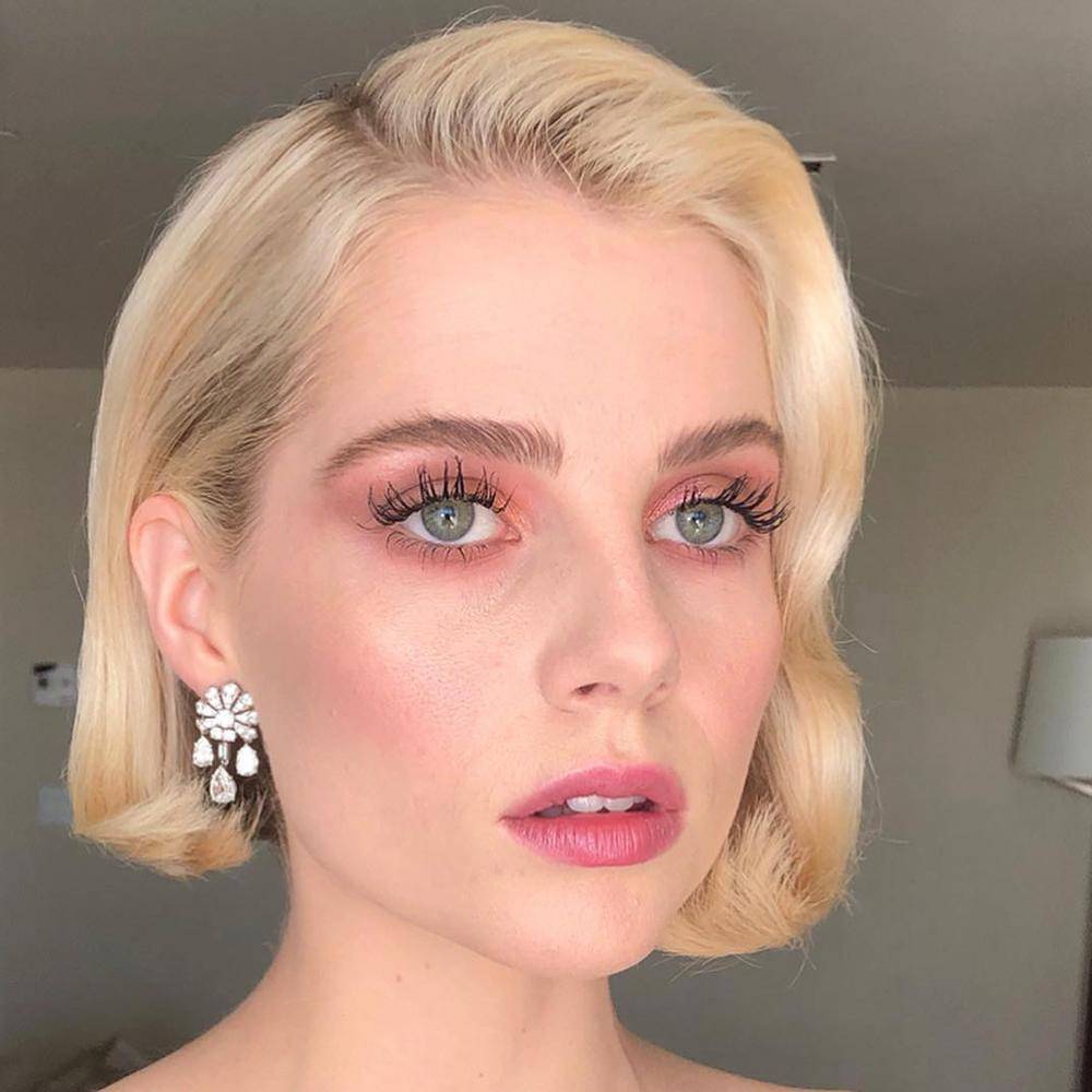 С одной стороны, румяна делают лицо рельефным и объемным, но с другой – помогают его сузить. Для этого нужно наносить средство вертикальными движениями по линии от подбородка до виска, тогда лицо визуально вытягивается. Только оттенок выбирайте приближенный к скульптору, а вот на щечки добавьте персиковые или розовые румяна.