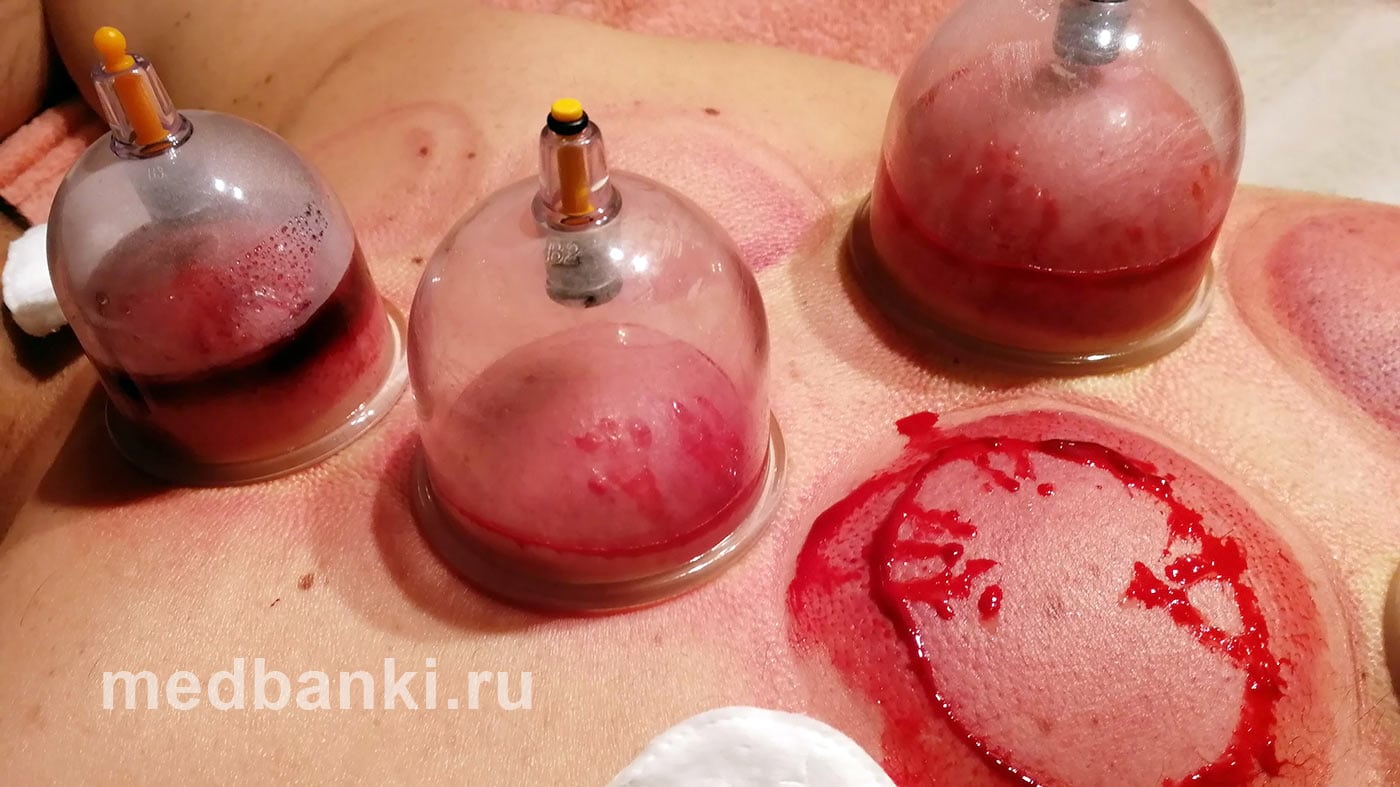 - банки находятся на коже пациента до тех пор, пока не перестанет выделяться кровь;