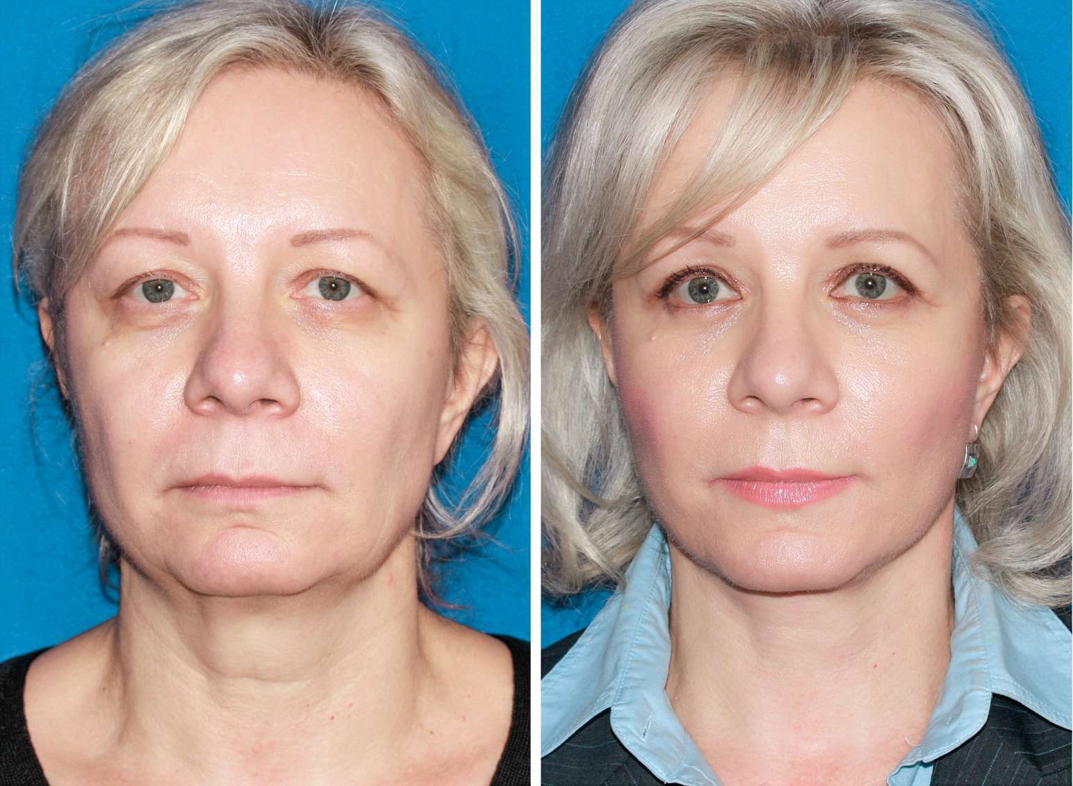- Женщинам 50–60 лет добиться успеха сложнее. Получится минимизировать крупные морщины, складки, птоз, устранить многочисленную свежую сетку.