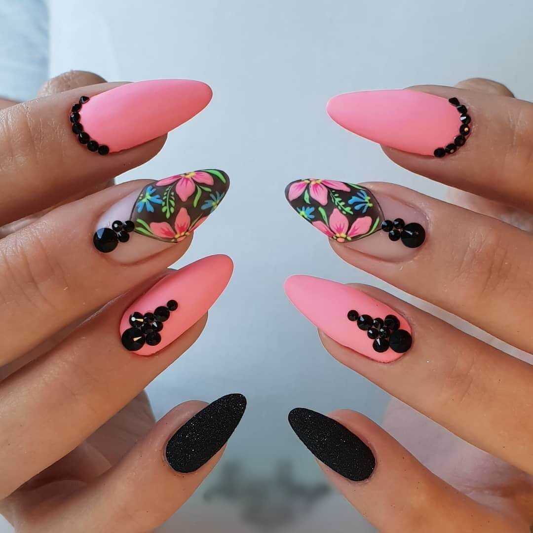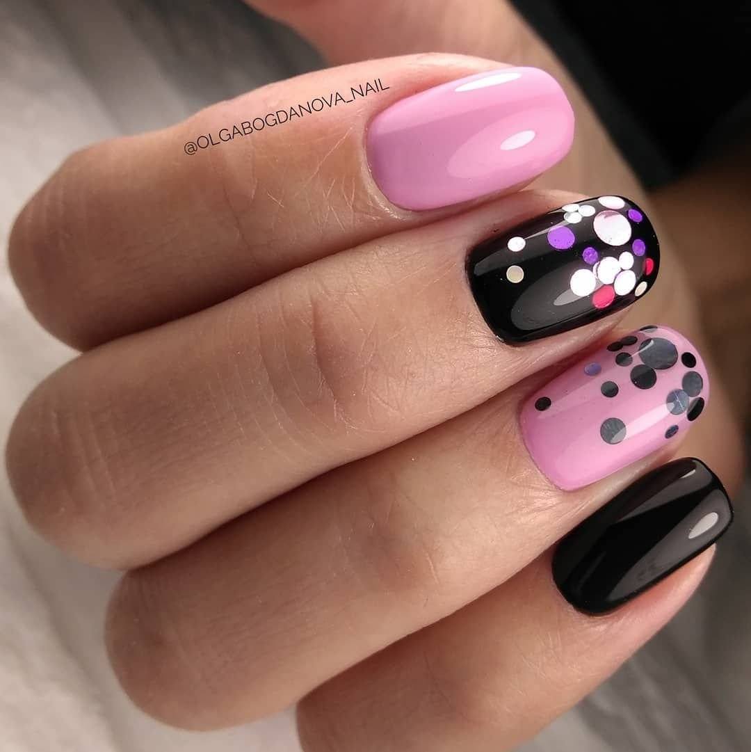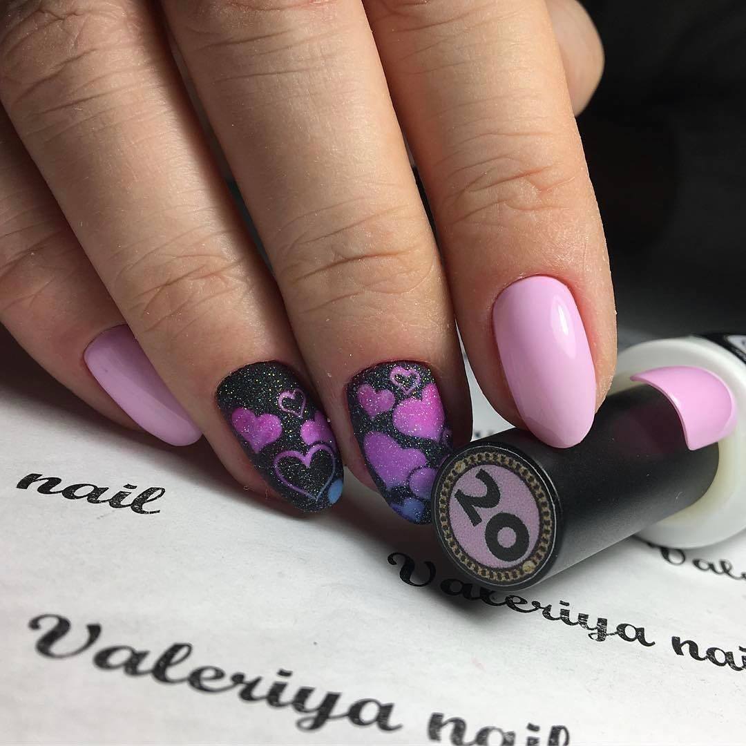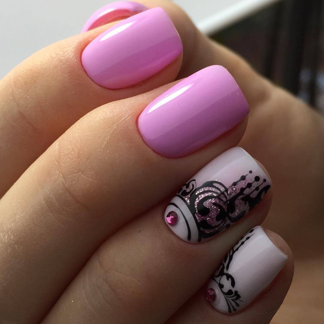 Маникюр черный с розовым вряд ли кого-то оставит равнодушным. Эта палитра сделает вас «центром вселенной». Огромной популярностью пользуется вариация, когда на розовую базу наносится черный рисунок.