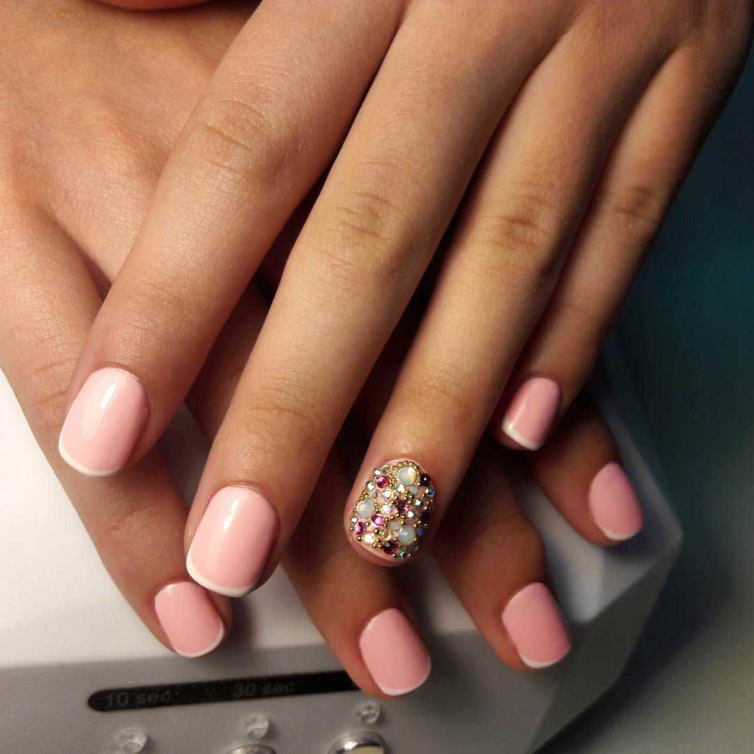 Порой может показаться, что розовое покрытие со стразами уже является законченным вариантом оформления ногтей. Но все же, мастера рекомендуют подчеркивать свое чувство вкуса и добавлять стильный дизайн. Ведь с ним любой маникюр будет смотреться намного более привлекательно. Поэтому мы подготовили несколько вариантов на любой вкус.