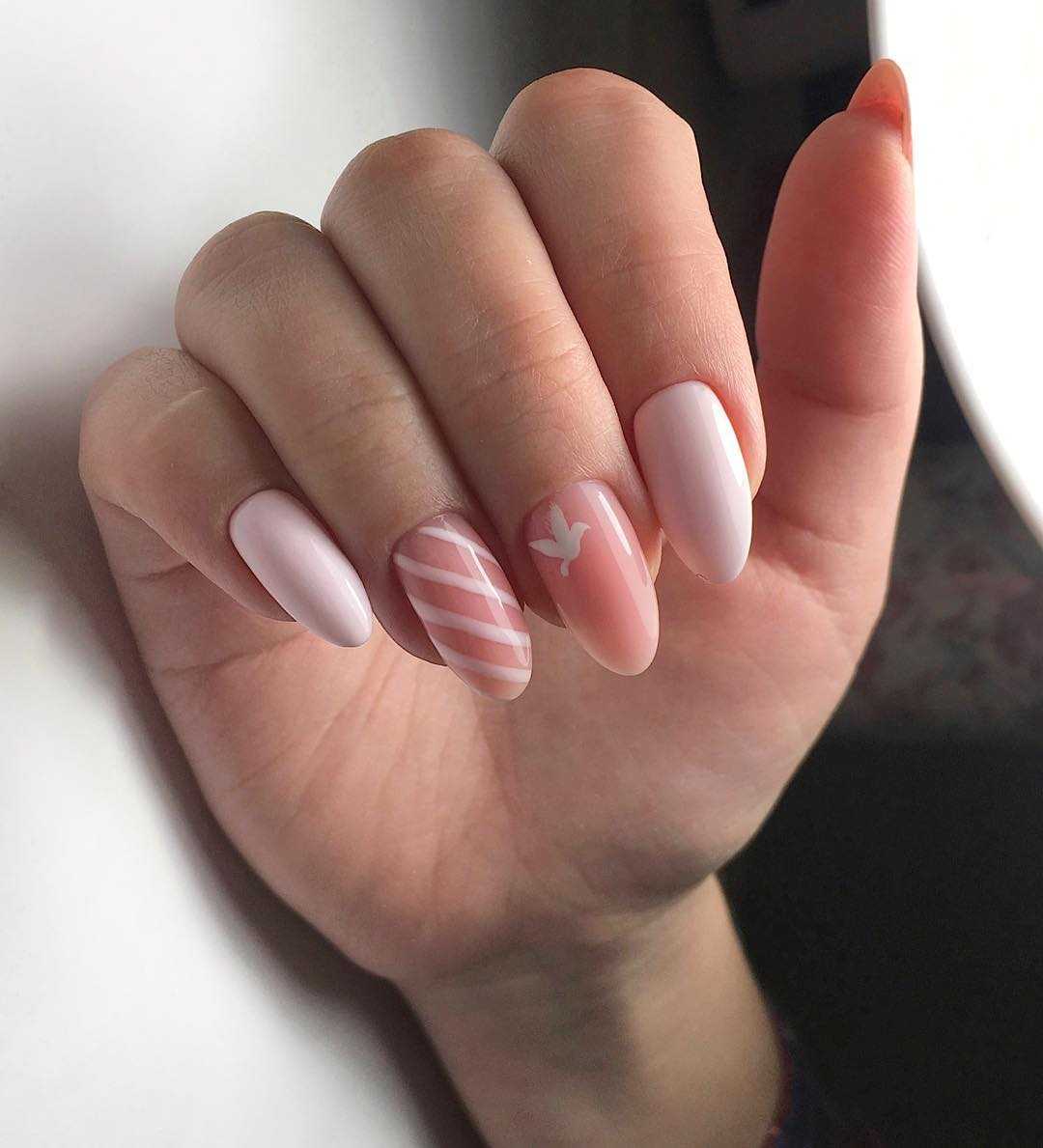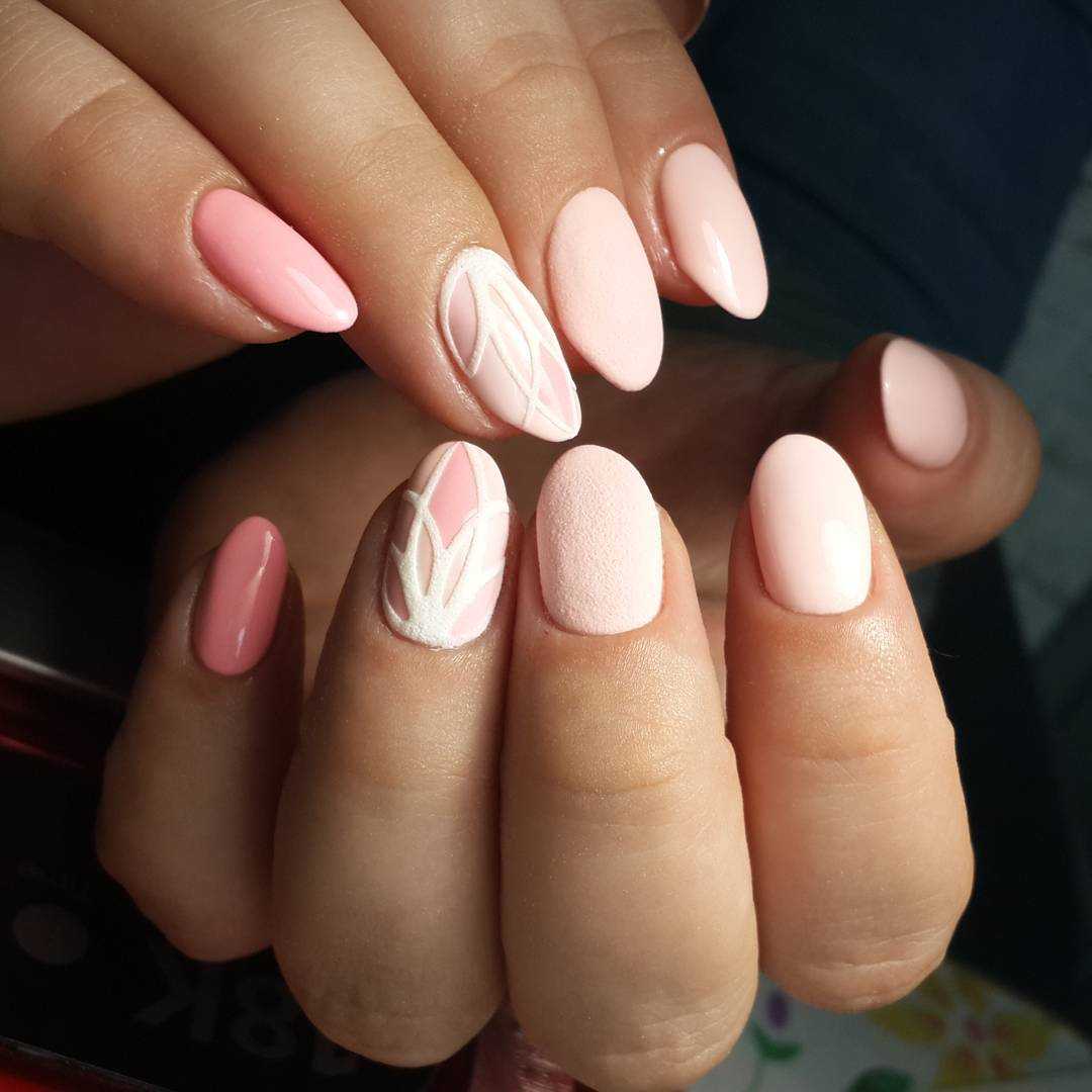 Самым трендовым сочетанием было, есть и будет совмещение в одном маникюре нежных пастельных оттенков, к примеру, пыльно розовый и нежно серый с большой долей белого цвета.