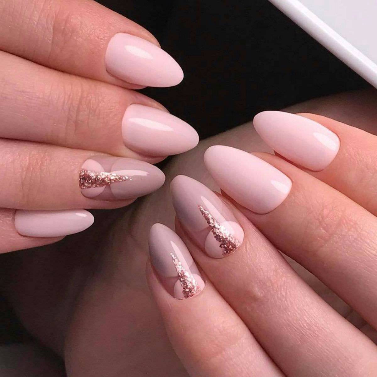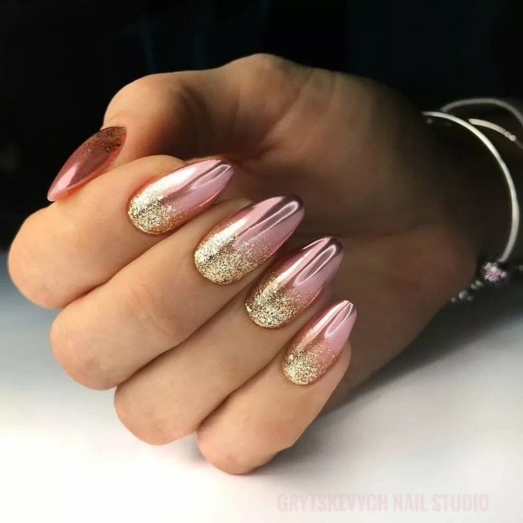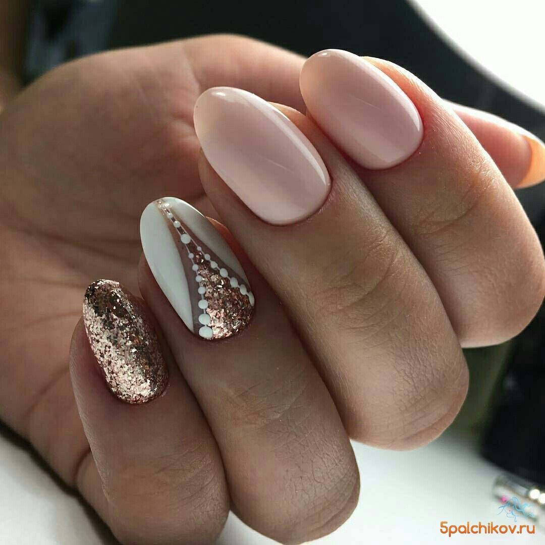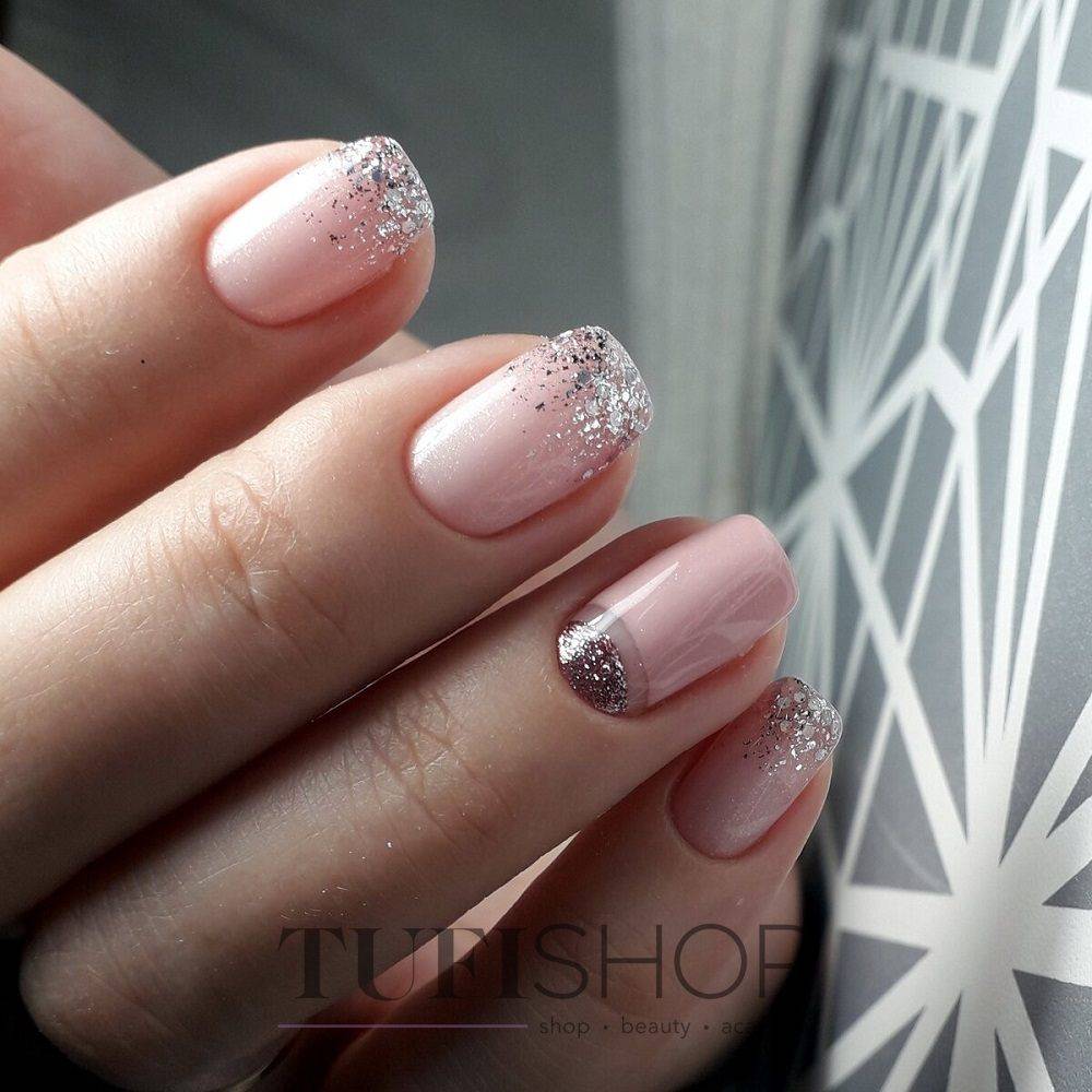 Красивый маникюр с добавление блёсток. Прекрасно впишется в праздничный образ, добавит некой роскоши и шика.