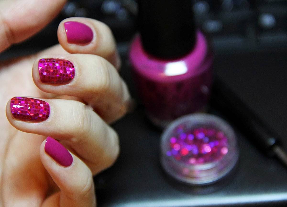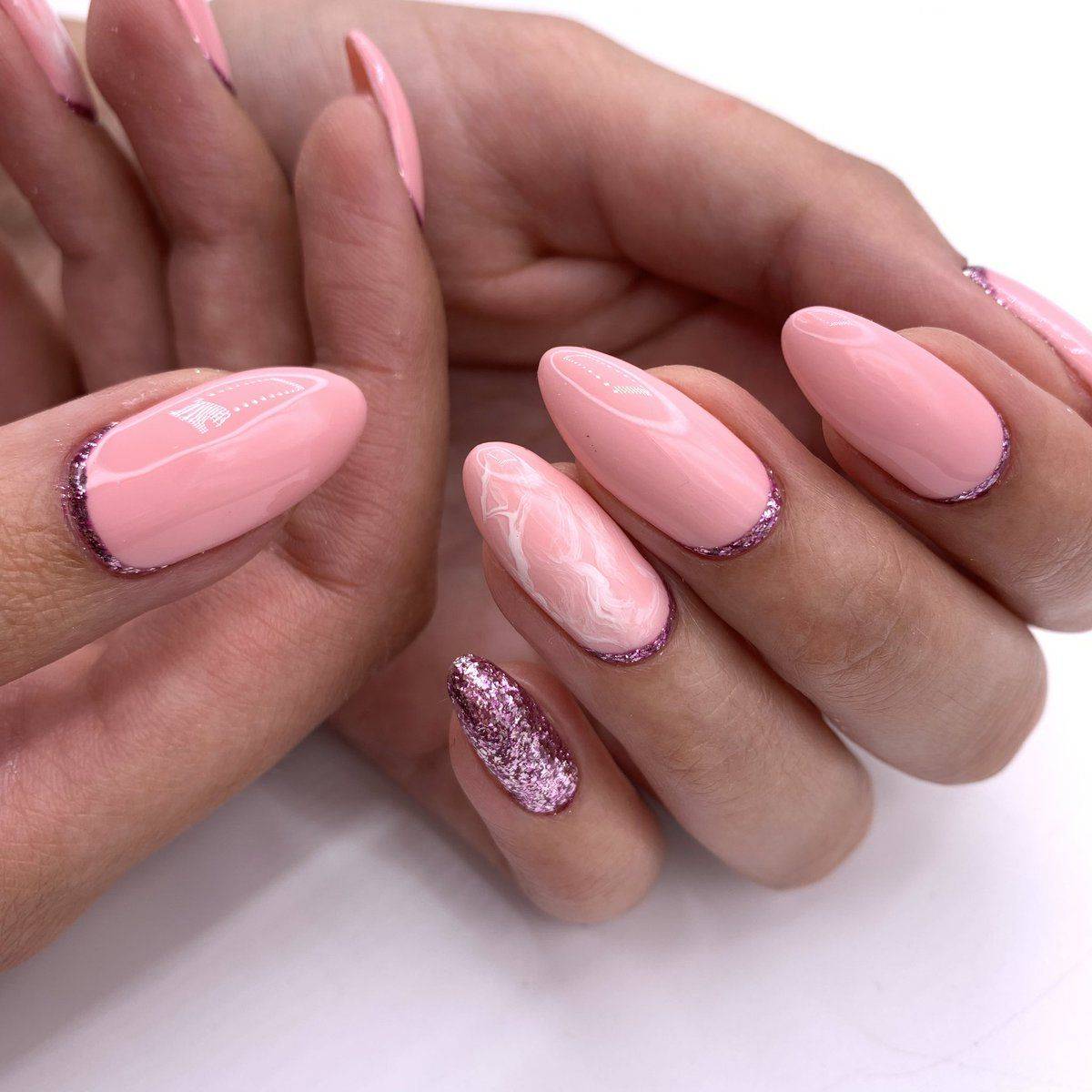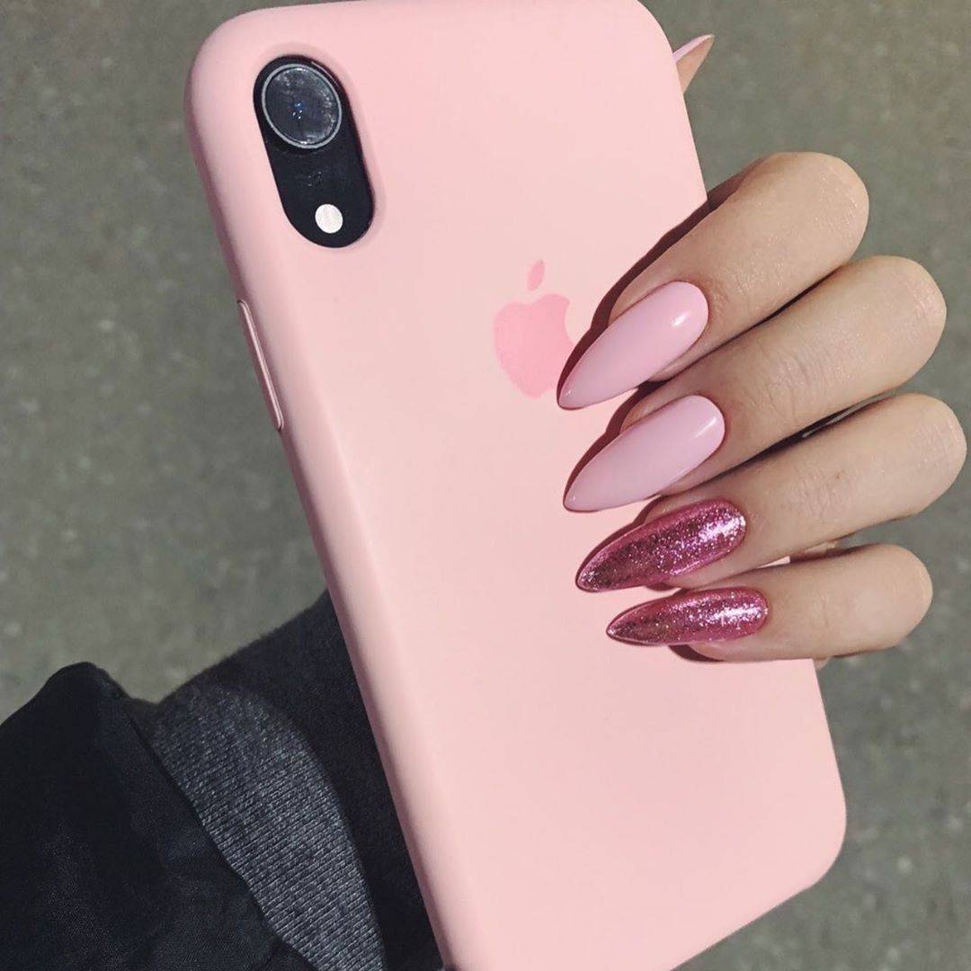 Такая эффектная и яркая деталь как глиттер вдохнет в розовый маникюр нотки торжественности и изыска. Даже матовый розовый цвет в соседстве с глиттером будет смотреться гораздо лаконичнее и эффектнее. Для декора выбирайте гель-лаки с глиттером, сухие блестки, пайетки и другой блестящий материал.