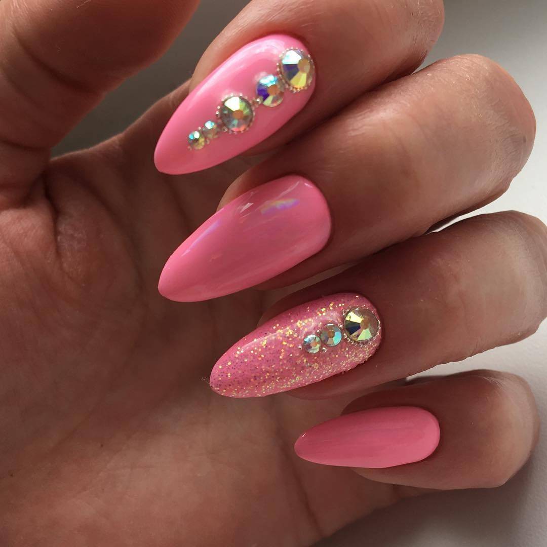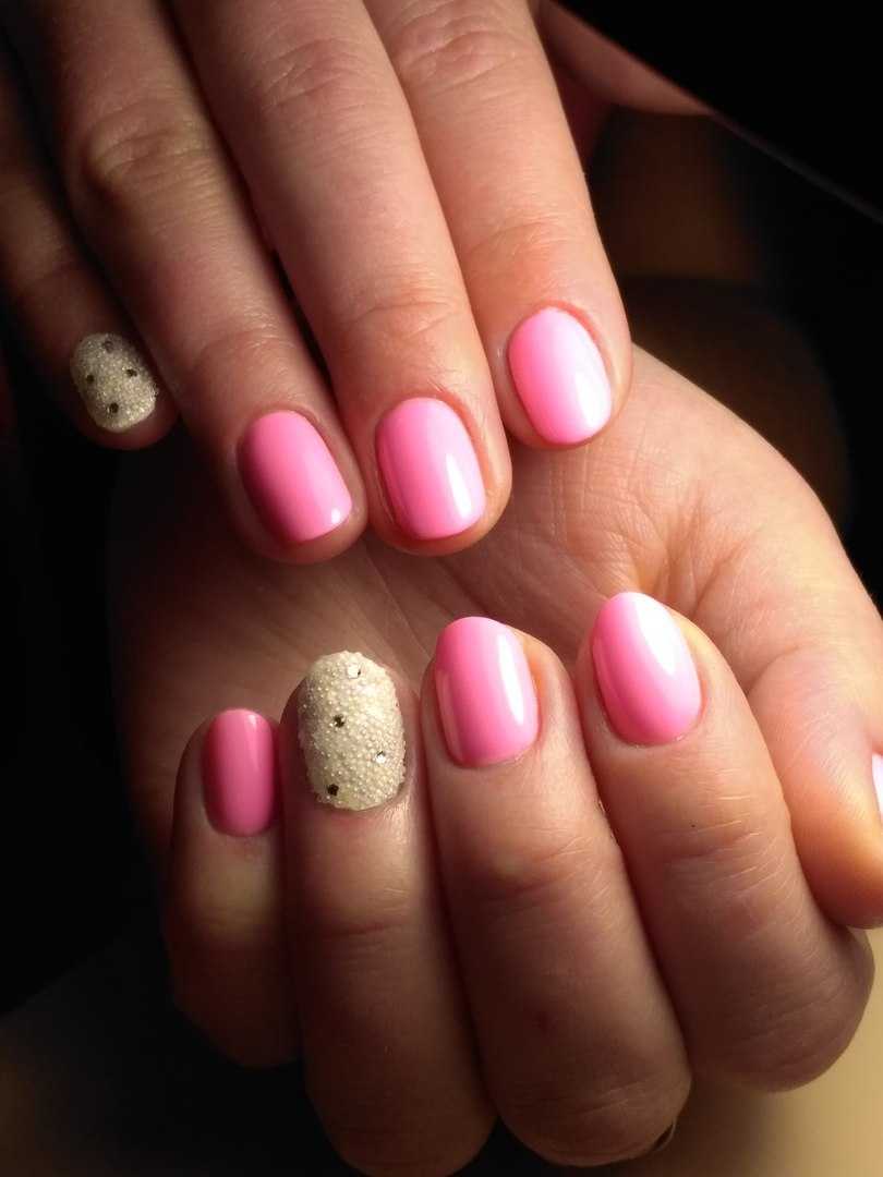 Действительно, оригинальный розовый способен создать яркий акцент в любом образе. Он прекрасно сочетается как с базовыми, так и с яркими цветами, что мы докажем в подборке идей маникюра в розовых тонах.
