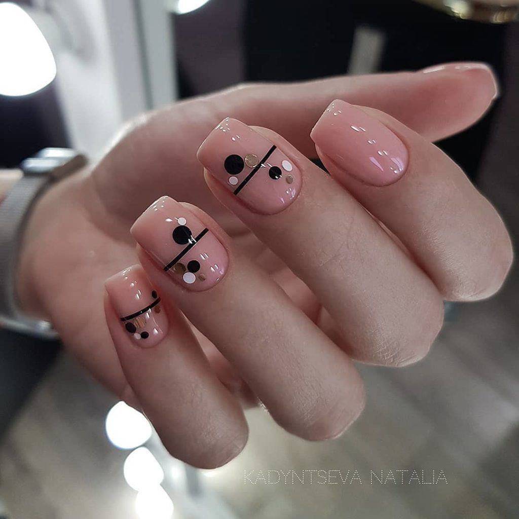 И, конечно же, минимализм – лидер 2019-го. Здесь все просто. На розовом покрытии достаточно сделать черный мазок. Вот так просто и изысканно.