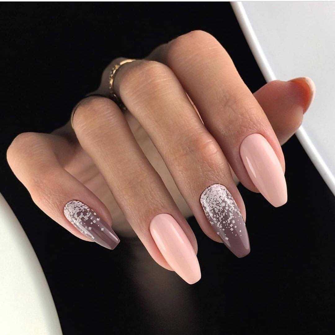 А теперь непосредственно стоит перейти к обсуждению актуальных идей маникюра в такой цветовой гамме. Первым популярным и в то же время абсолютно классическим вариантом маникюра становится всеми любимое амбре или градиент. Такой маникюр, тем более выполненный в нежных и неброских оттенках, смотрится крайне элегантно и эстетично, придает его обладательнице особый шарм и изюминку. Он подойдёт ко всем образам и мероприятиям, причем где-то выделяя модницу из серой толпы, а где-то наоборот приглушая чрезмерный шик. Это, пожалуй, единственное сочетание цветов, которое может одновременно выглядеть так ярко, и так сдержанно нюдово. Выполнив градиент, можно в конце задекорировать акриловой пудрой, стразами ил же просто покрыть матовым финишем.
