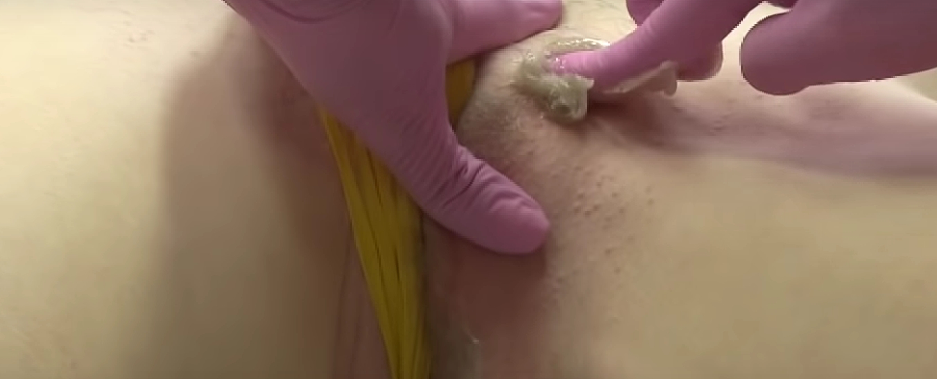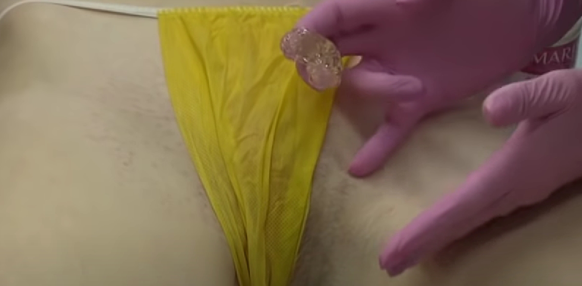 - Манипуляция повторяется на соседних участках кожи, включая лобок, пока не будут удалены все волоски.