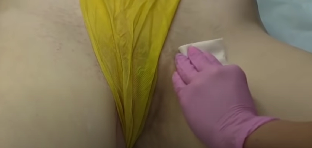 Процедура начинается с подготовки кожи. Необходимо принять душ; в крайнем случае можно воспользоваться влажными салфетками.