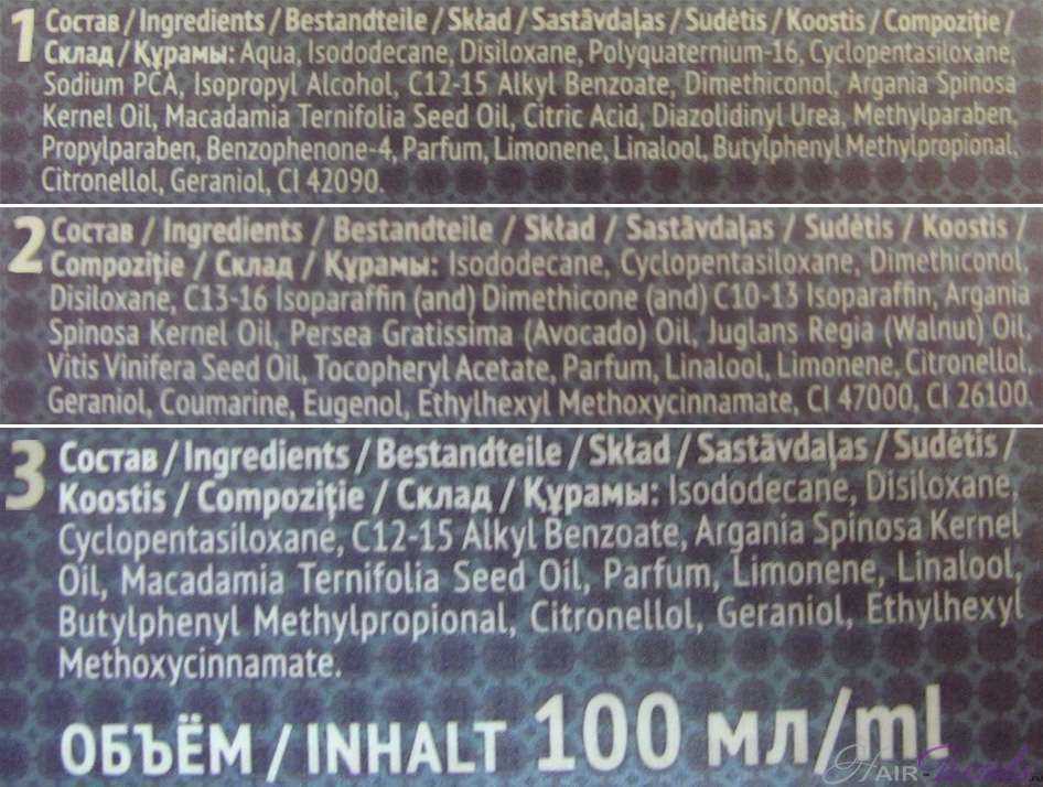 Каждый из трех флаконов имеет объем в 100 мл, поэтому для коротких волос средства окажется достаточно даже для нескольких применений.