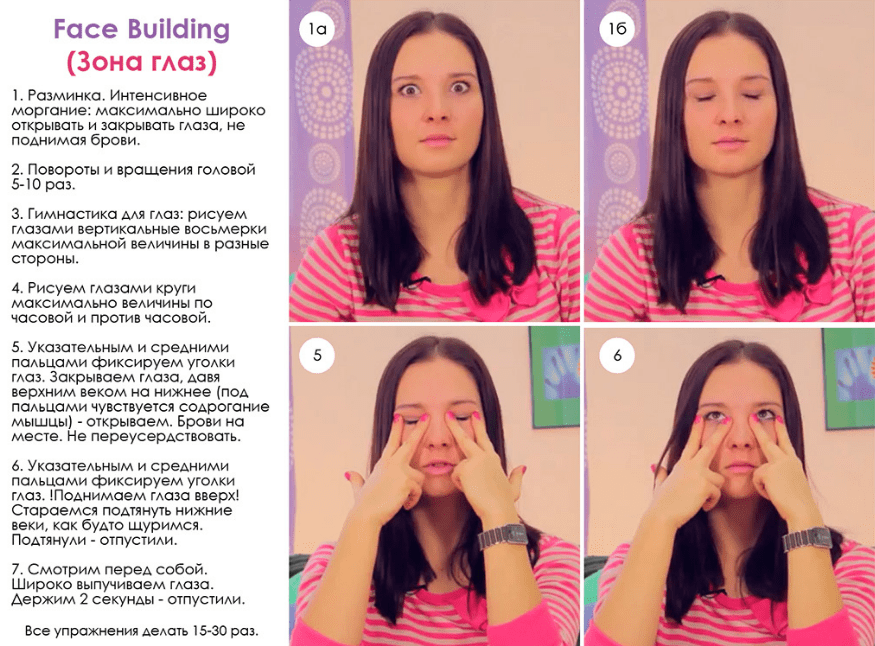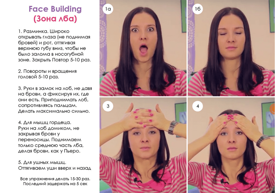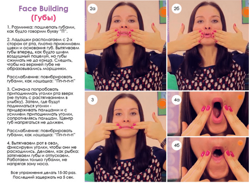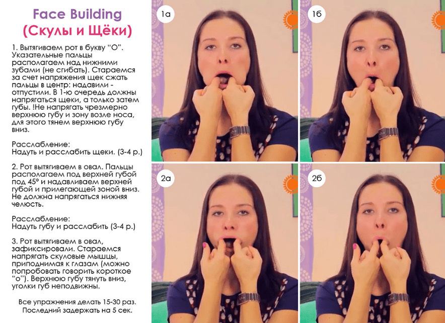 Упражнения фейсбилдинга для лица включают в себя несколько этапов: