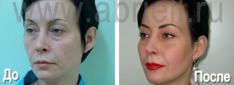 - устранение мешков и морщинок под глазами;