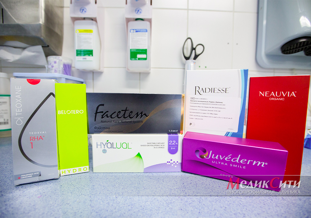 - Гиалуроновую кислоту — наиболее популярный вариант. Подходит для коррекции мелких недостатков и увеличения объема. Дополнительно увлажняет и разглаживает кожу;