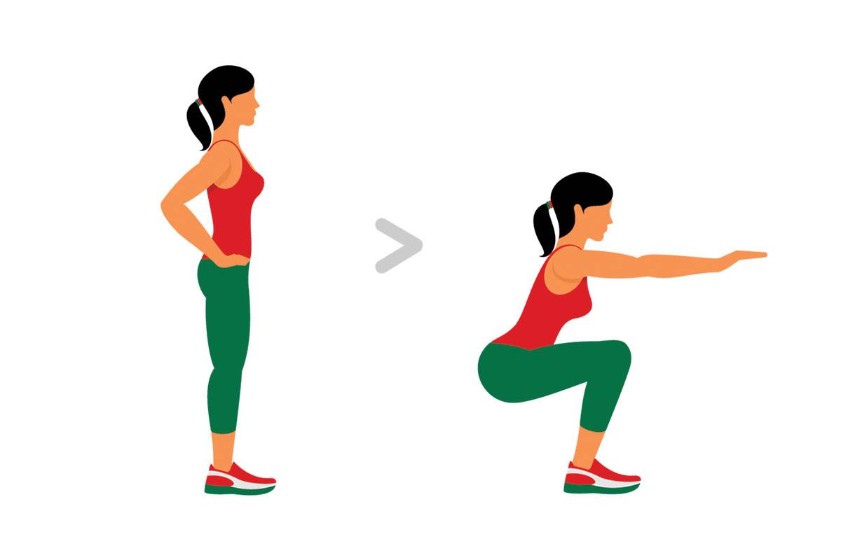 · простые приседания с вытягиванием вперед верхних конечностей;