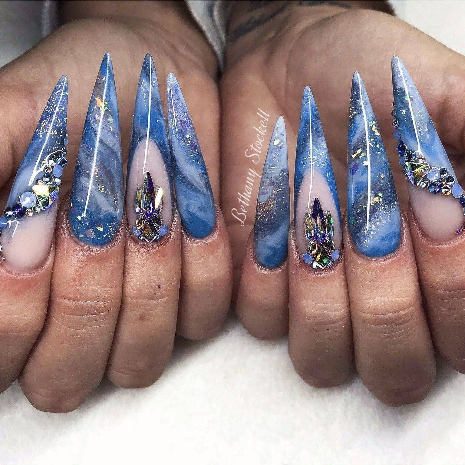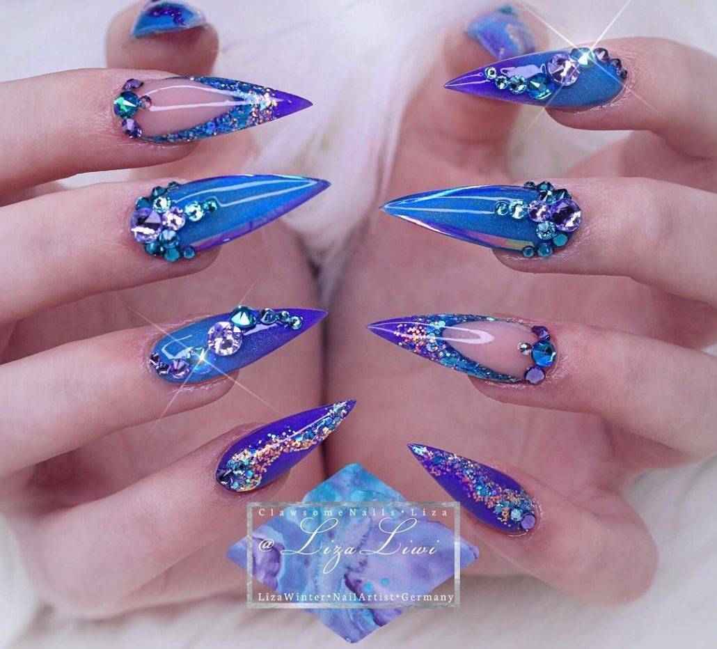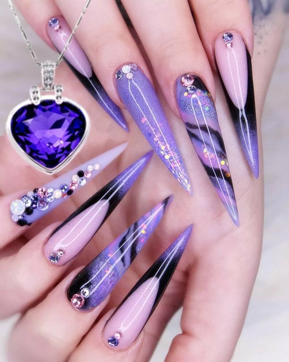 Острые ногти со стразами 2020: идеи эффектного дизайна ногтей